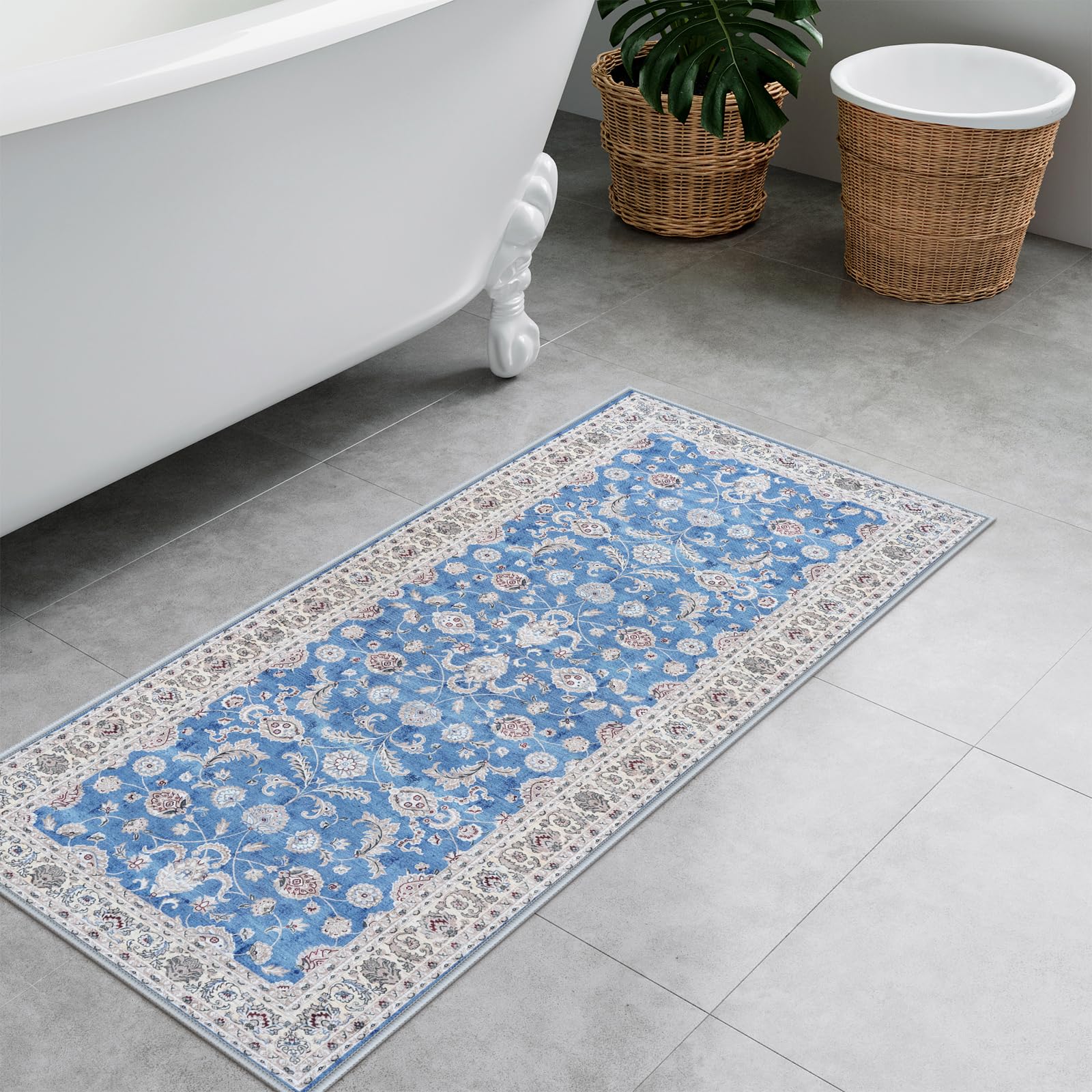 HAOCOO 玄関マット 室内 ペルシャ絨毯風 キッチンマット 洗える 滑り止め 45х120cm ラグマット 廊下敷き オールシーズン 耐磨耗性 防音 室外 シェニール適用 抗菌防臭 軽量 ライトブルー