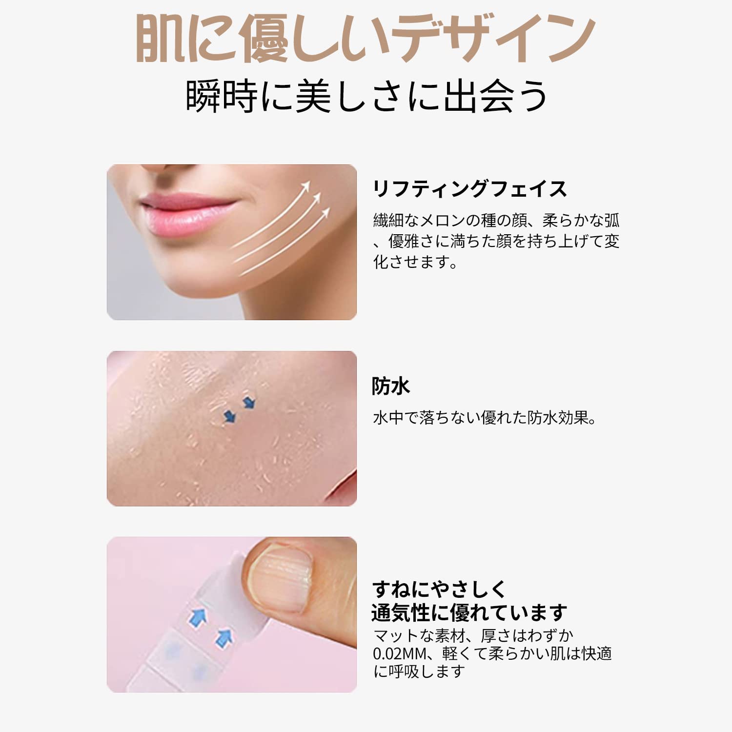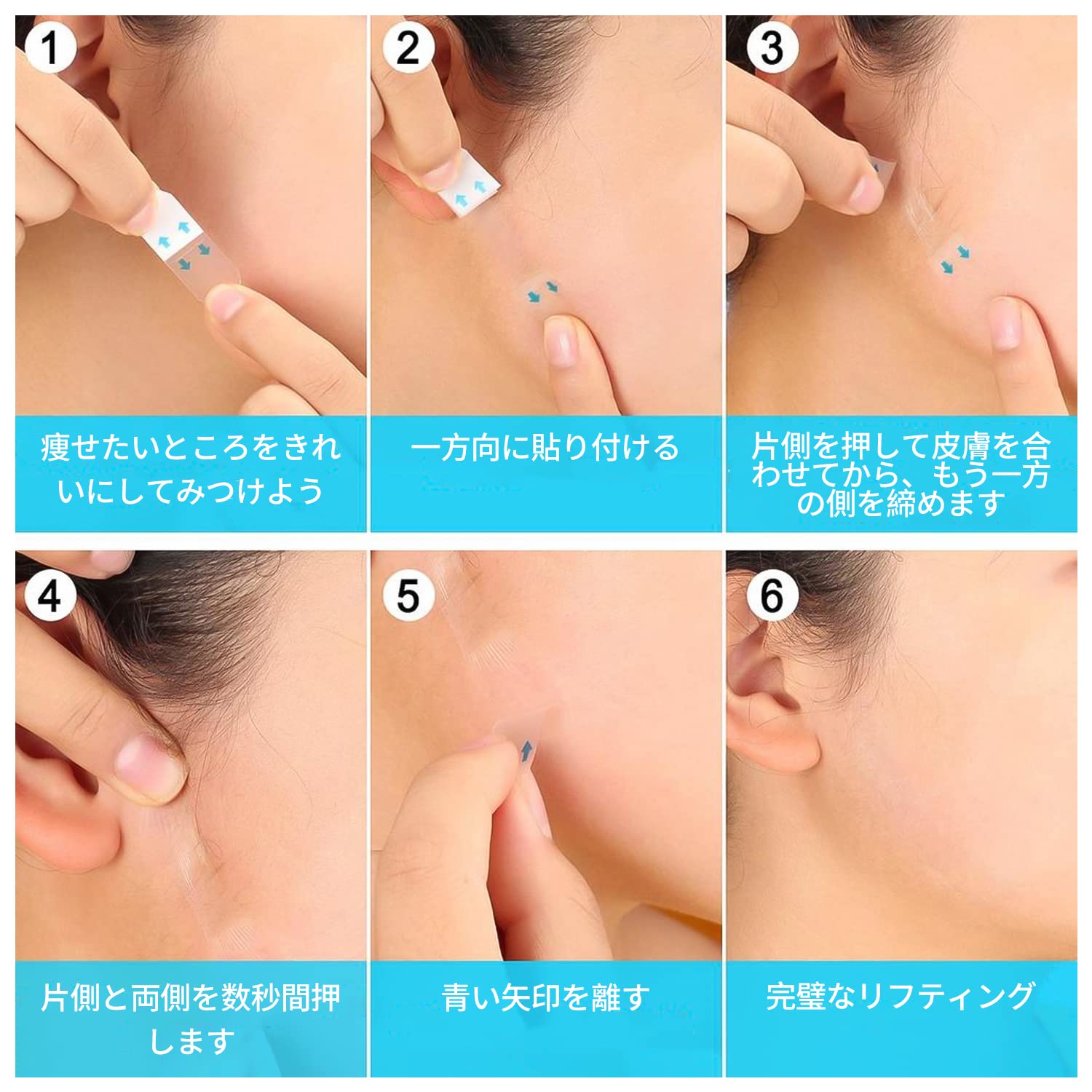 【小顔効果】たるんだフェイスラインを極薄テープでリフトアップをアシスト。透明シールを張るだけで小顔に近づける魔法の テープ !