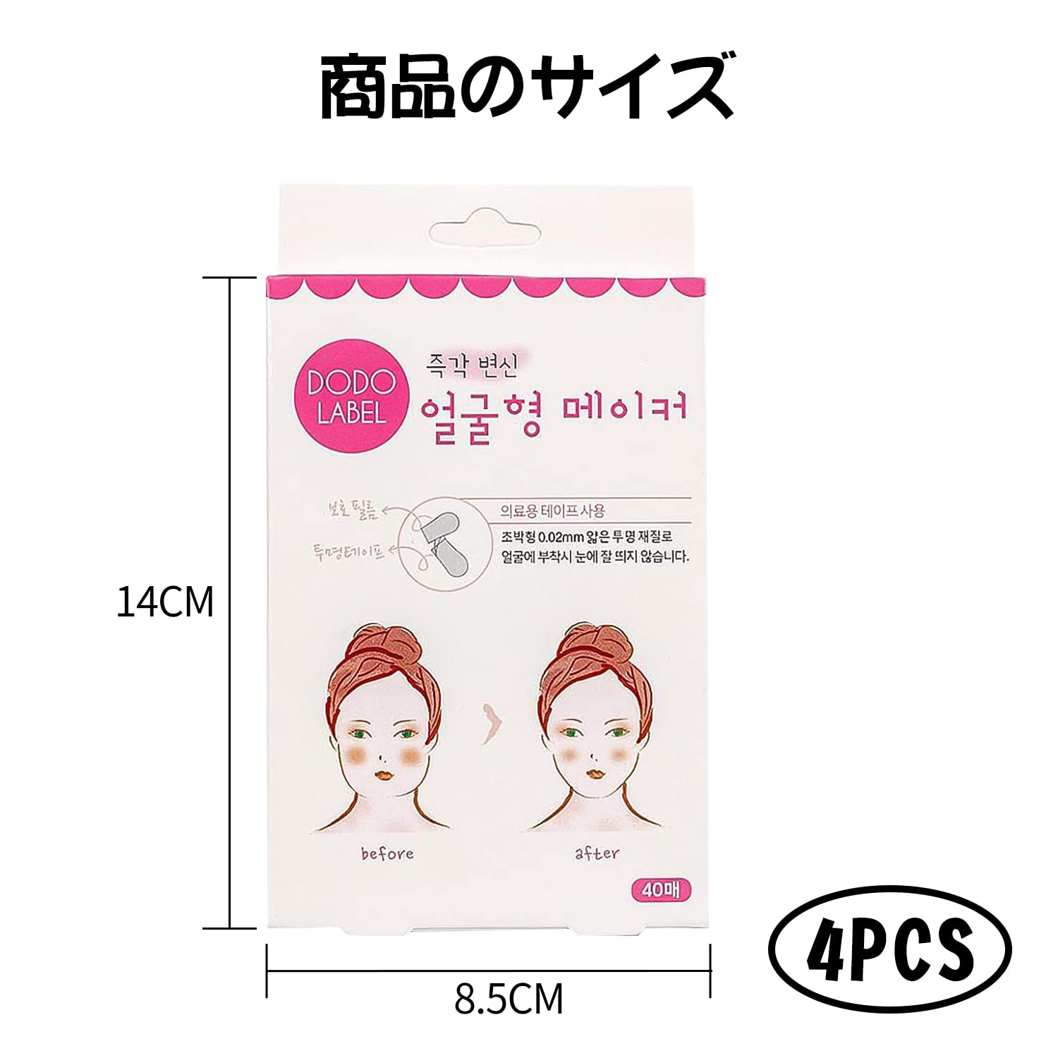 【つや消し目立たない】本社のフェイステープは艶消しで顔に貼ると目立たなく、自然なつけ心地 よいです。またテープの上からメイクもでき、女性が喜ぶ小顔作りの神器です。
