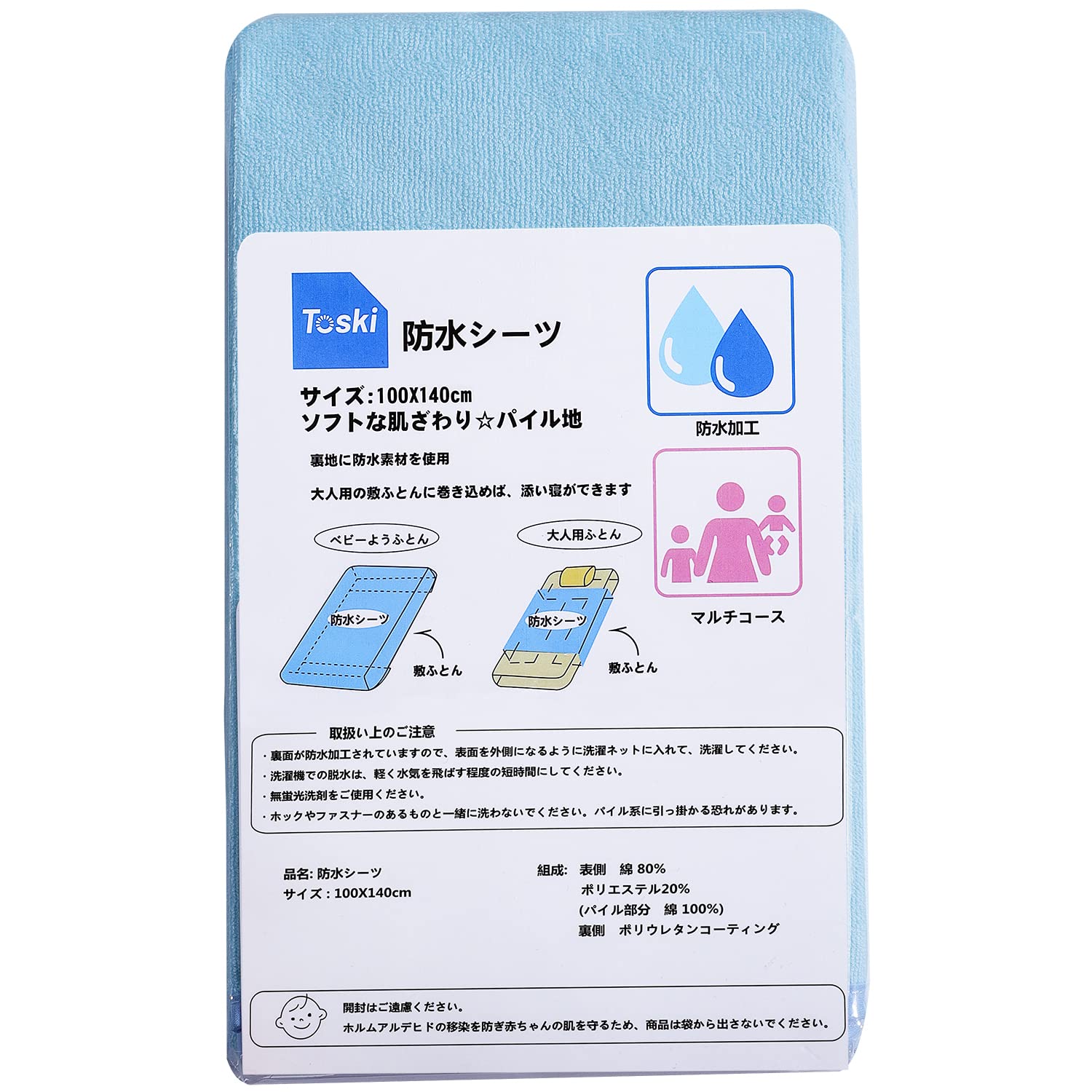 【特価セール】Toski 防水シーツ 介護 部分用 2枚セット 綿100% 半身用タイプ 強力防水 通気 速乾 お手入れ簡単 丸洗い可 介護用シーツ 生理失禁対策 部分タイプ お年寄り 病人 ベビー 水色