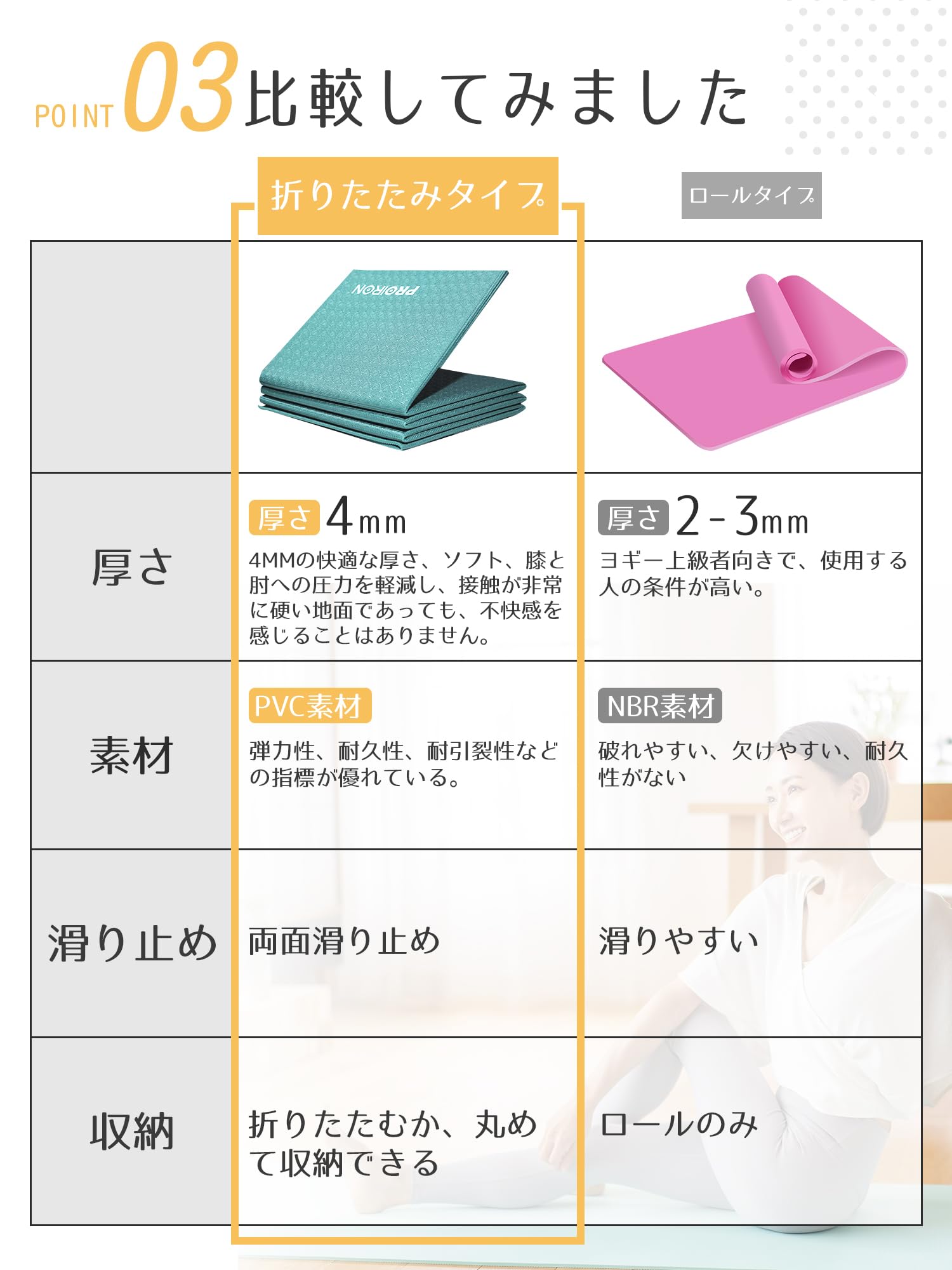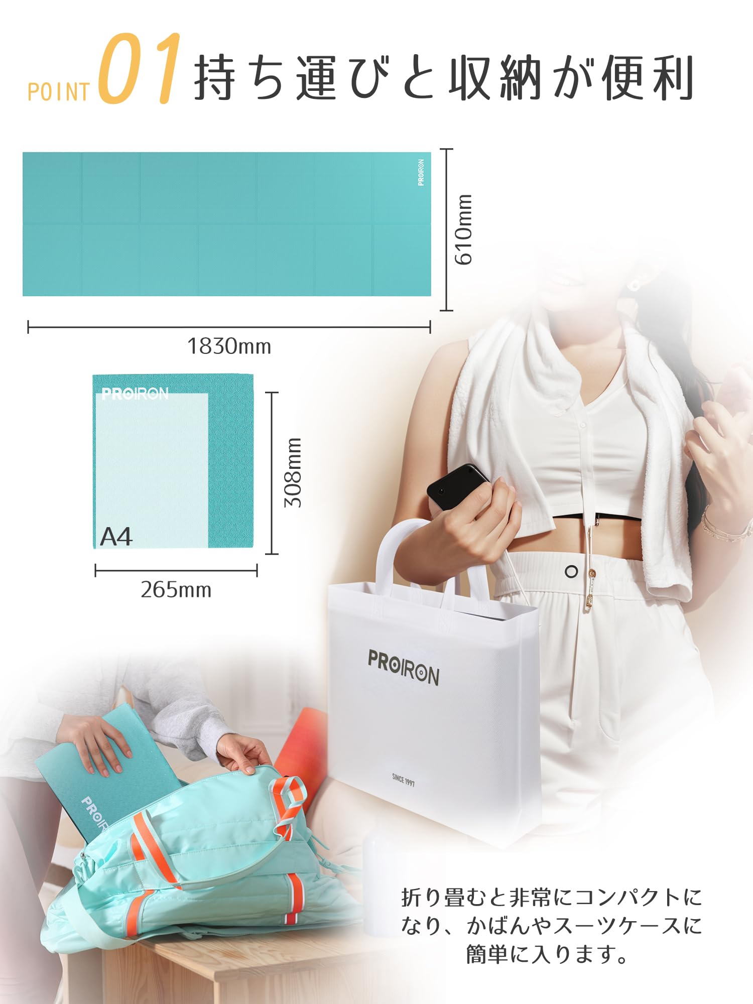 【新着商品】PROIRON ヨガマット 折りたたみ ストレッチマット 折畳み 折り畳みマット コンパクト トラベルヨガマット トレーニングマット 折りたたみ 軽量 持ち運び 183×61cm 5色