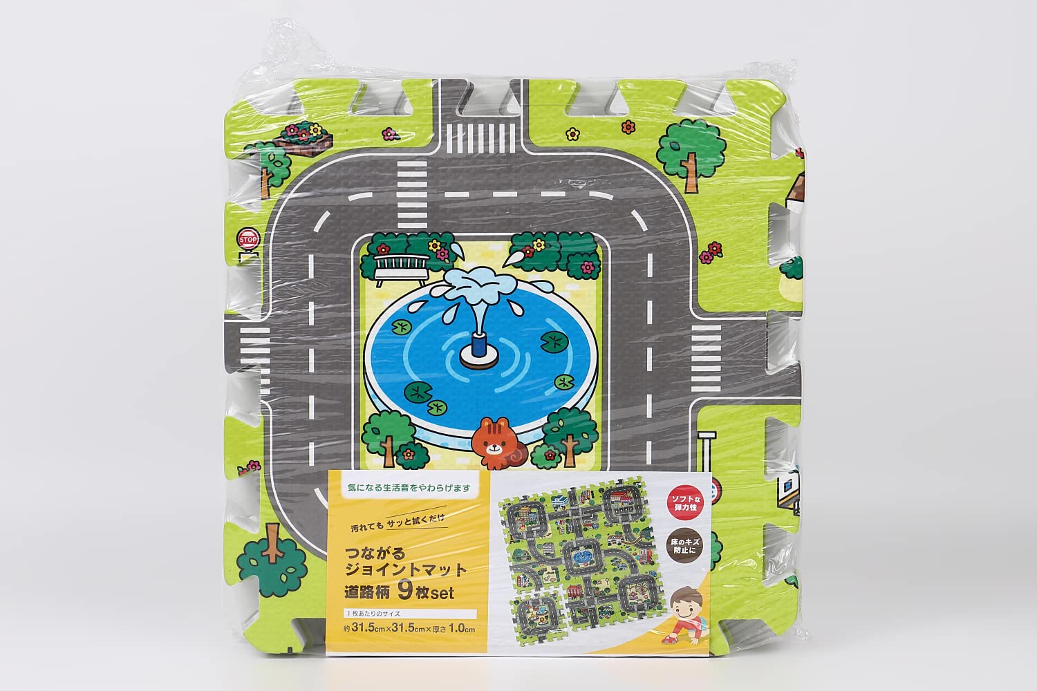 ユノックス 床材 ジョイントマット パズルマット 道路 9枚セット [約31.5x31.5x厚さ1cm/子供 キッズ プレイマット/防音対策/床の傷防止/床暖房対応]