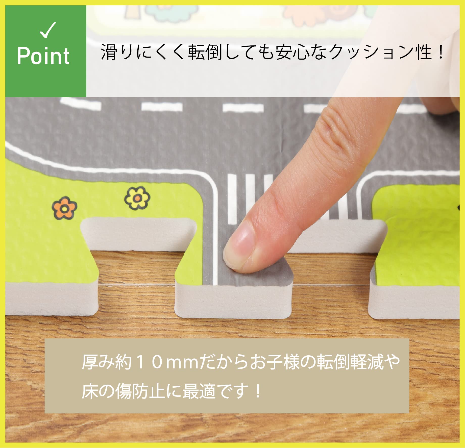 クッション性がありソフトで優しい感触。小さなお子様にも安心。子供部屋、キッズルームで転倒時の怪我軽減に。