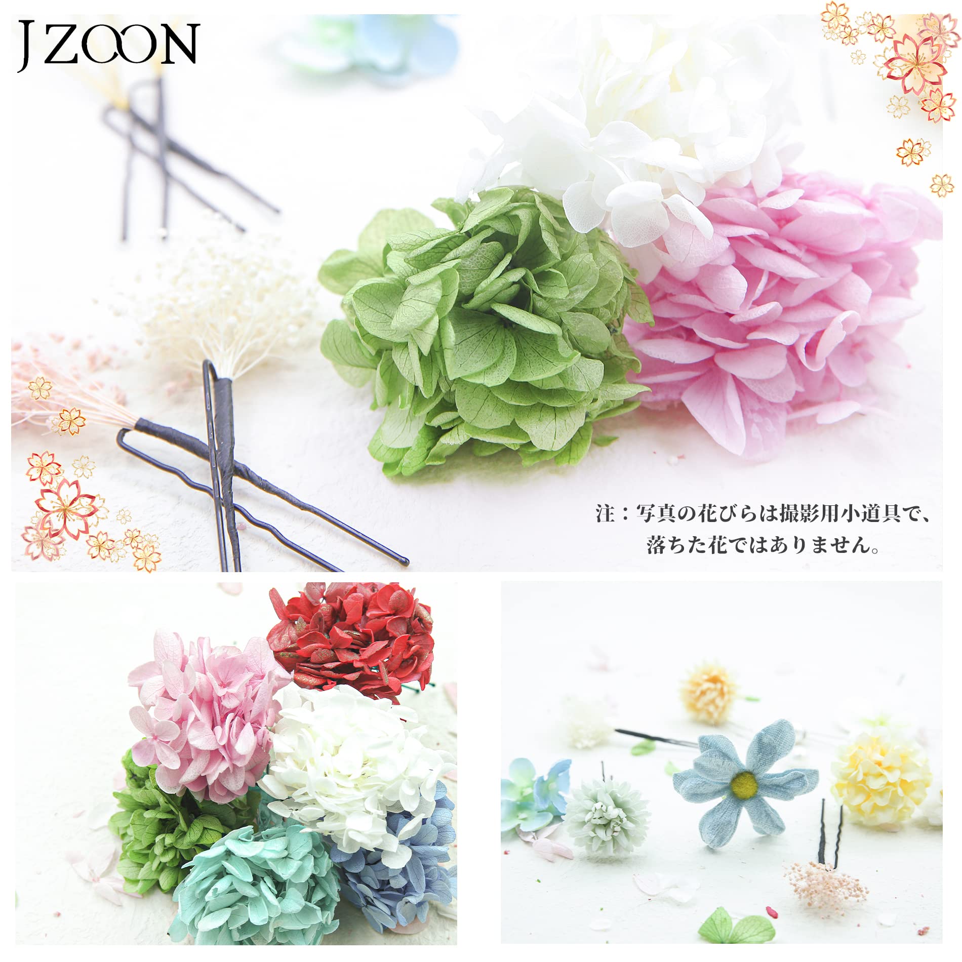 【在庫セール】[JZOON] 髪飾り つまみ細工 7色 ドライフラワー 造花飾り 水引 ヘアーアクセサリー かすみ草 人気 和服 着物 振袖 袴 花 浴衣 成人式 七五三 結納 卒業式 入学式 結婚式 発表会
