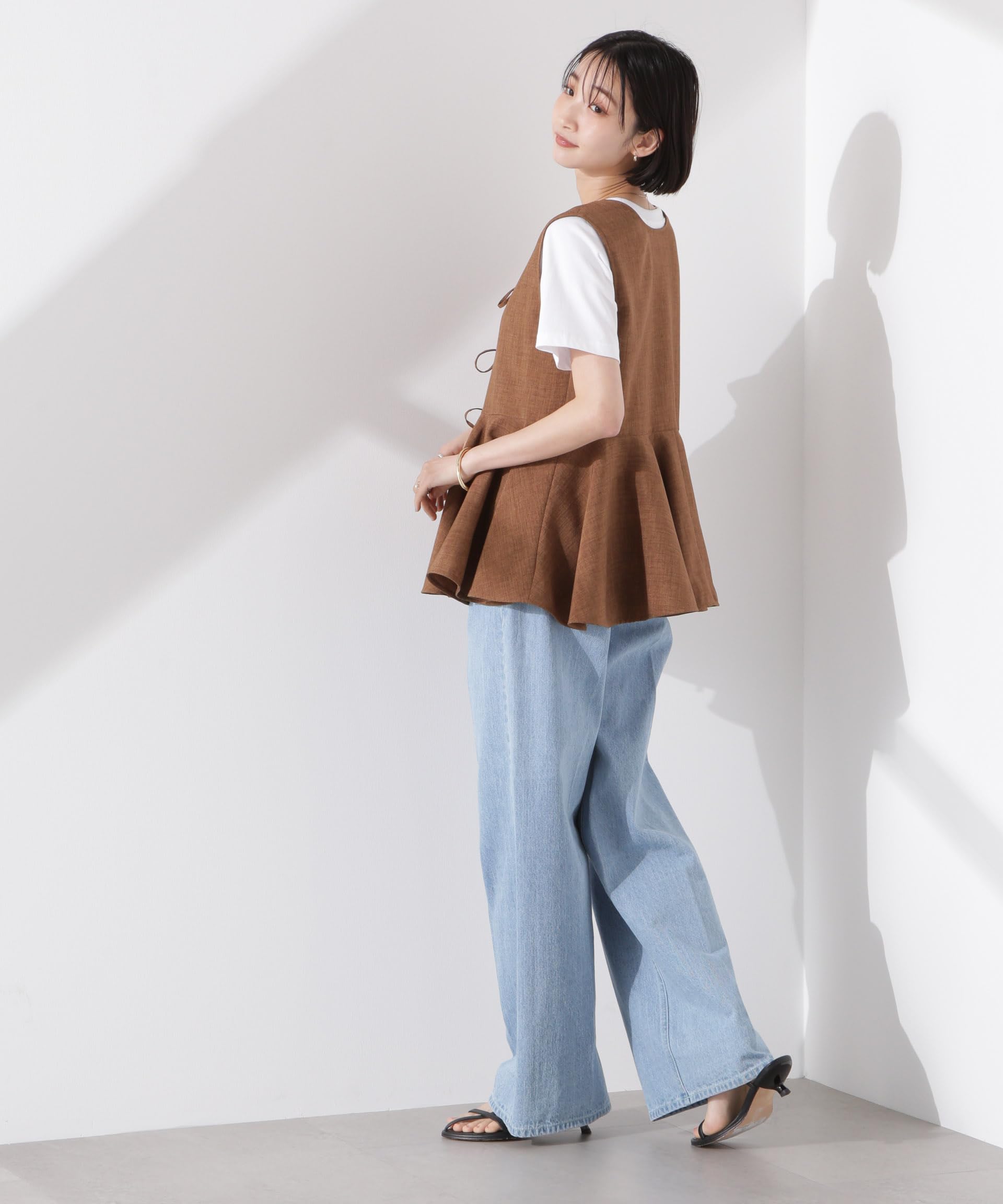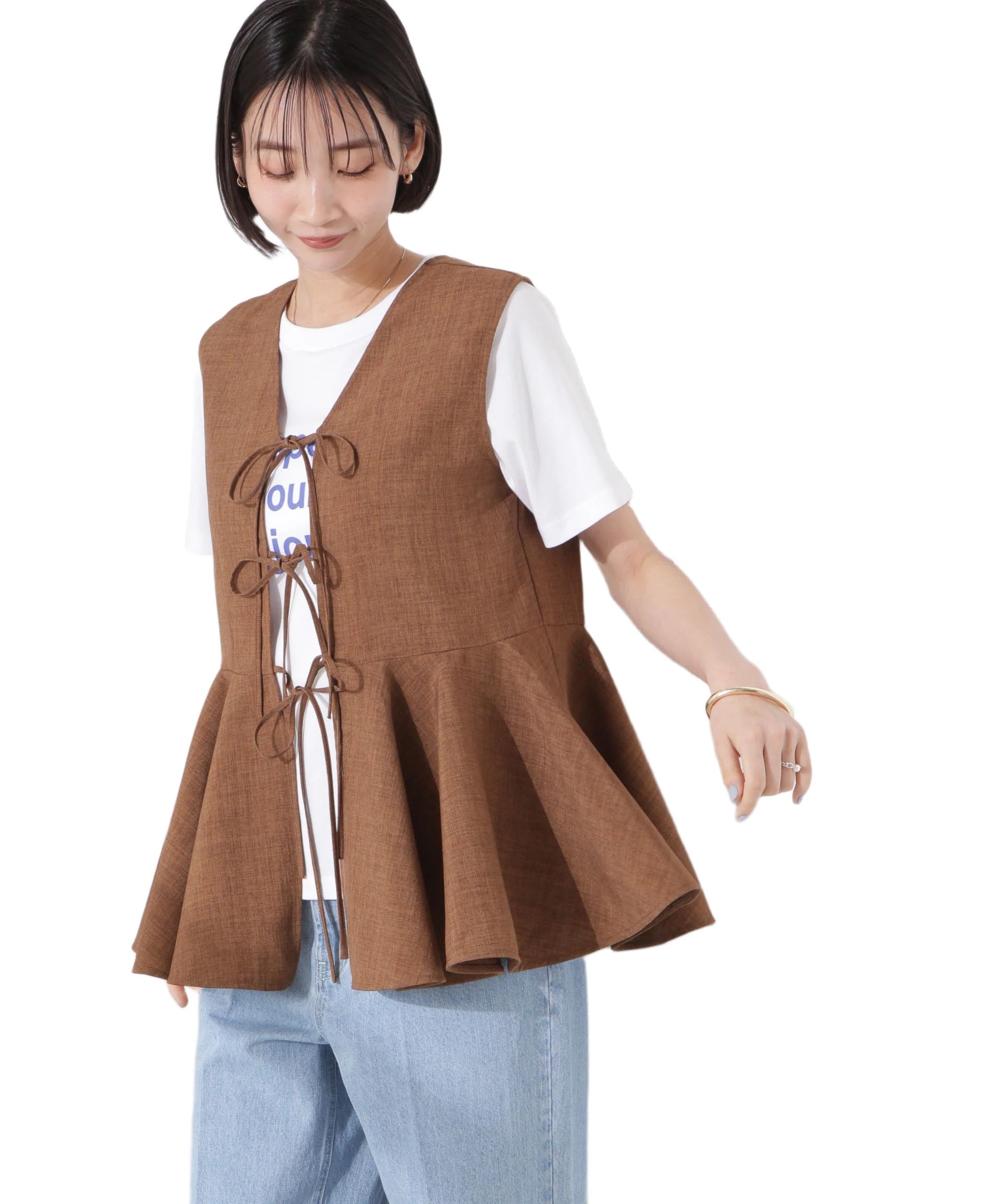 [ナノ・ユニバース] 前後2way リネンライク リボン結び ジレ ブラウス (セットアップ可) レディース 673-5121323