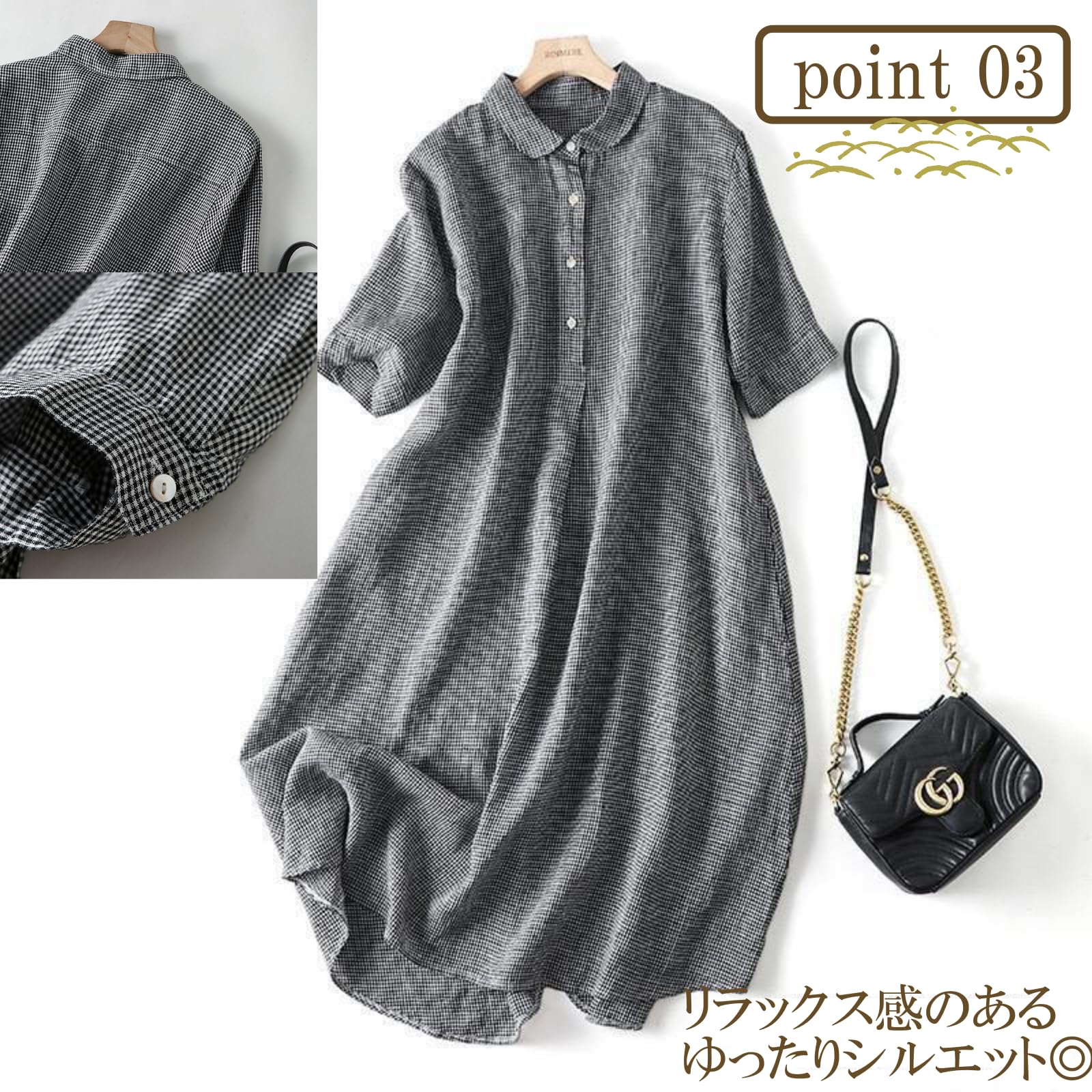 【1/2style】丸襟 チェック柄 ロング チュニックワンピース レディース 半袖 カジュアル 着痩せ効果 マタニティ対応 M?XXL