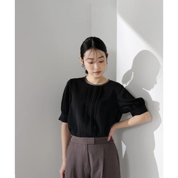 バイカラーの切り替えと、フロントのピンタックデザインがシンプルながらも存在感のあるブラウス。襟ぐりと袖口は異素材のバイカラーでさりげなくポイントを効かせ、ジャケットインは勿論1枚でも着映えするデザインです。コーディネートに取り入れやすいオフ×ベージュと、爽やかな印象のミント×エクリュ、大人配色のクロ×チャコールの3色展開。