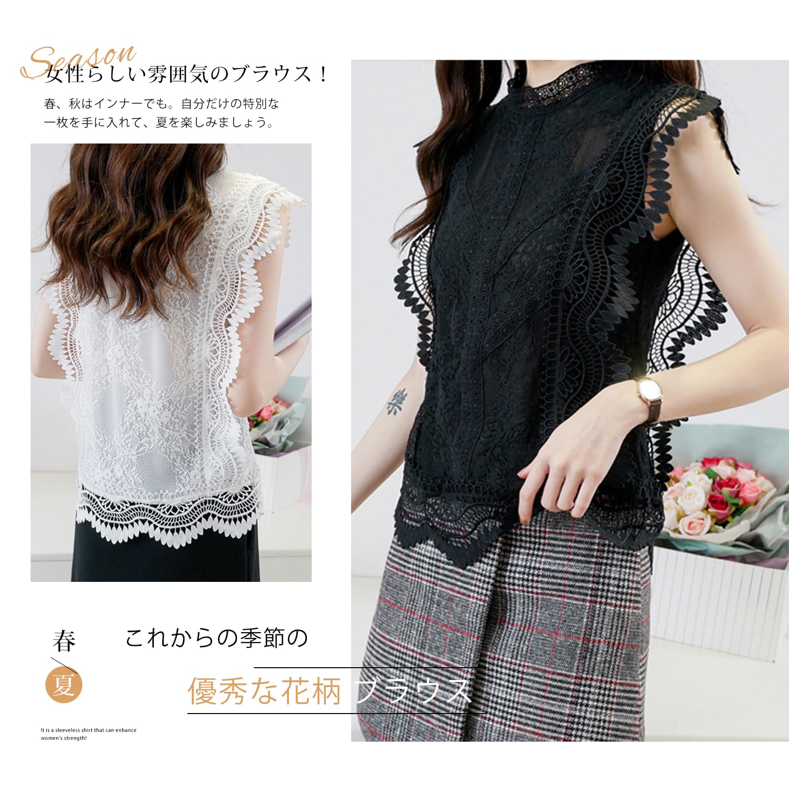 【定番で人気のレースブラウス!】大人のフェミニンなスタイルにカジュアルをさりげなくアピールしてくれる、ノースリーブブラウスが登場!レースデザインが特徴的なタンクトップブラウス。紋織加工を採用しており、身頃に凹凸感のある上品なフラワーレースが一枚で主役に。透け感があるけれど、インナーの生地がしっかりと肌をカバーしてくれます。は大人っぽくて魅力的な雰囲気に溢れていますレディーストップス夏ブラウス。