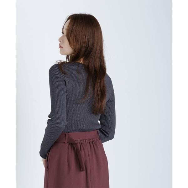 繊細なラメ糸を使った程よい肉間のリブニットですl。