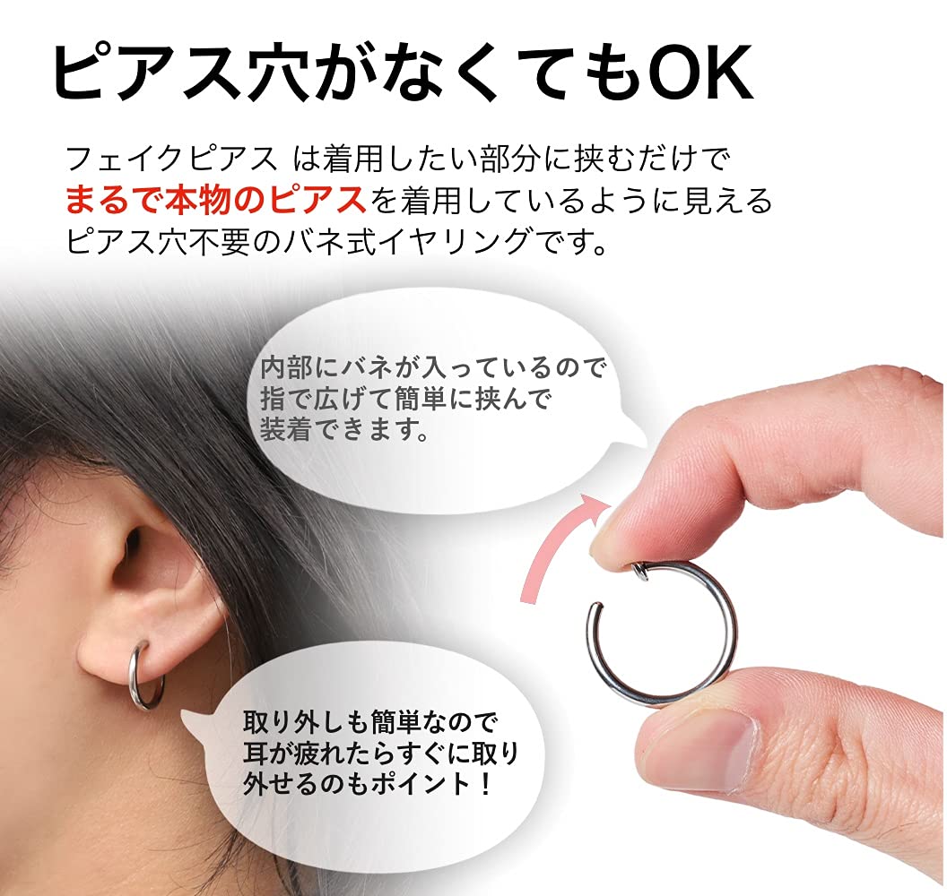 【数量限定】[Puente] 3カラー3サイズ 両耳セット 穴不要 太め フェイクピアス フープピアス リング メンズ レディース シルバー ゴールド フープ 大ぶり 大きい 小さい 小ぶり シンプル リング ピアス イヤリング イヤーカフ ノンホールピアス 太 太い 太目 太め (ゴールド 21)