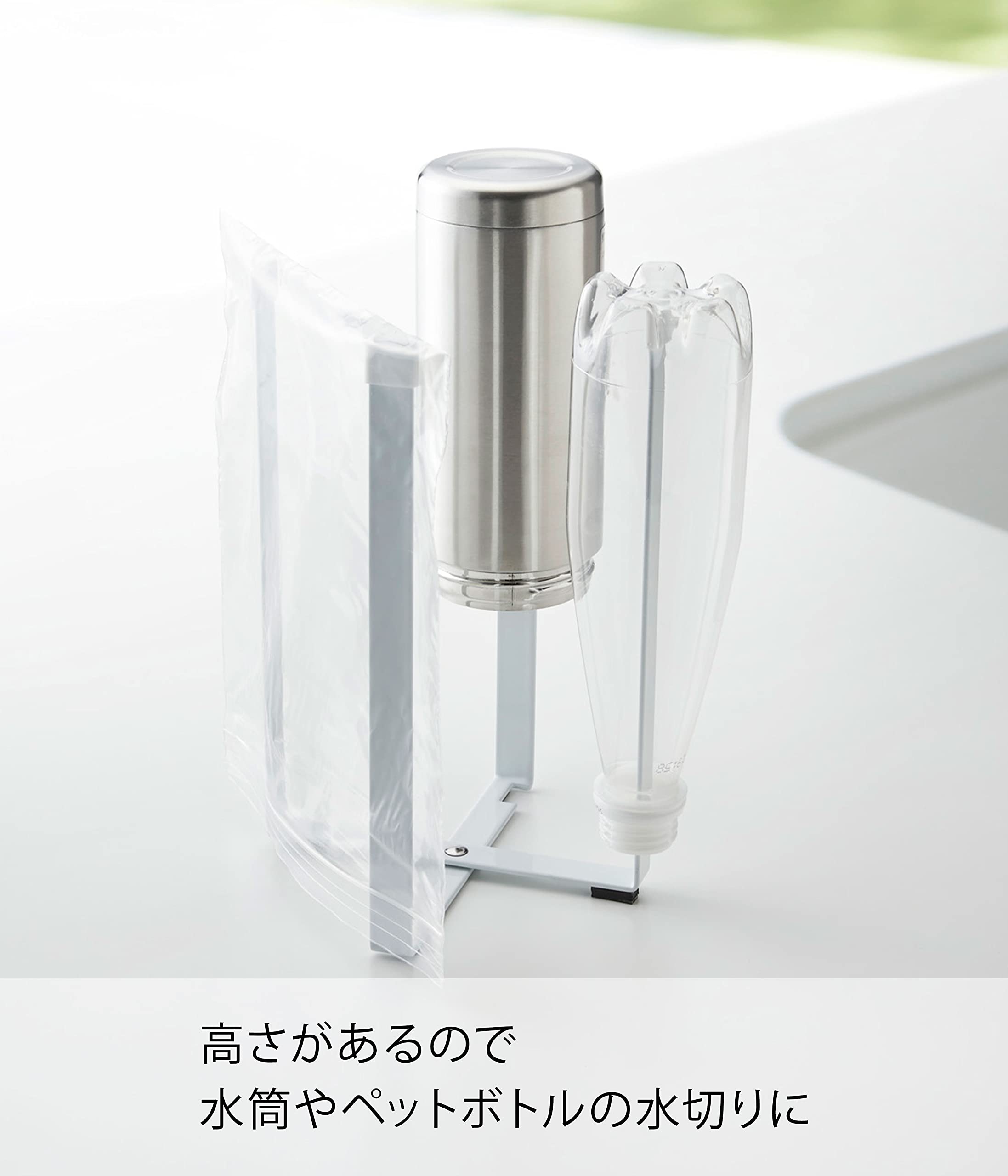 山崎実業(Yamazaki) ポリ袋エコホルダー L ホワイト 約W15×D14.5×H22cm タワー tower 卓上ゴミ箱 三角コーナー 水切り スリムに折り畳める 3180
