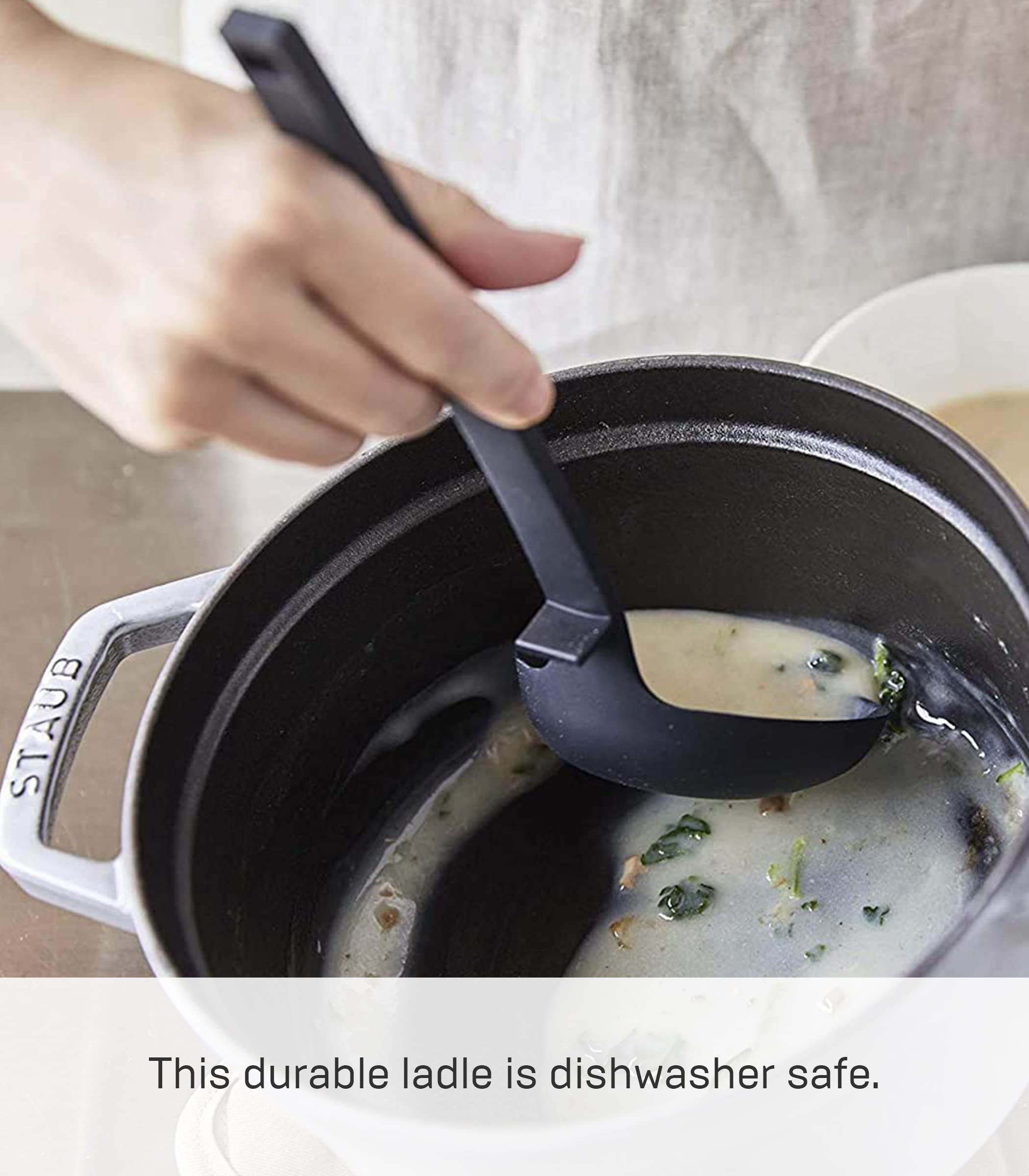 鍋にフィットして、カレーやシチューなども残さずきれいにすくえます。