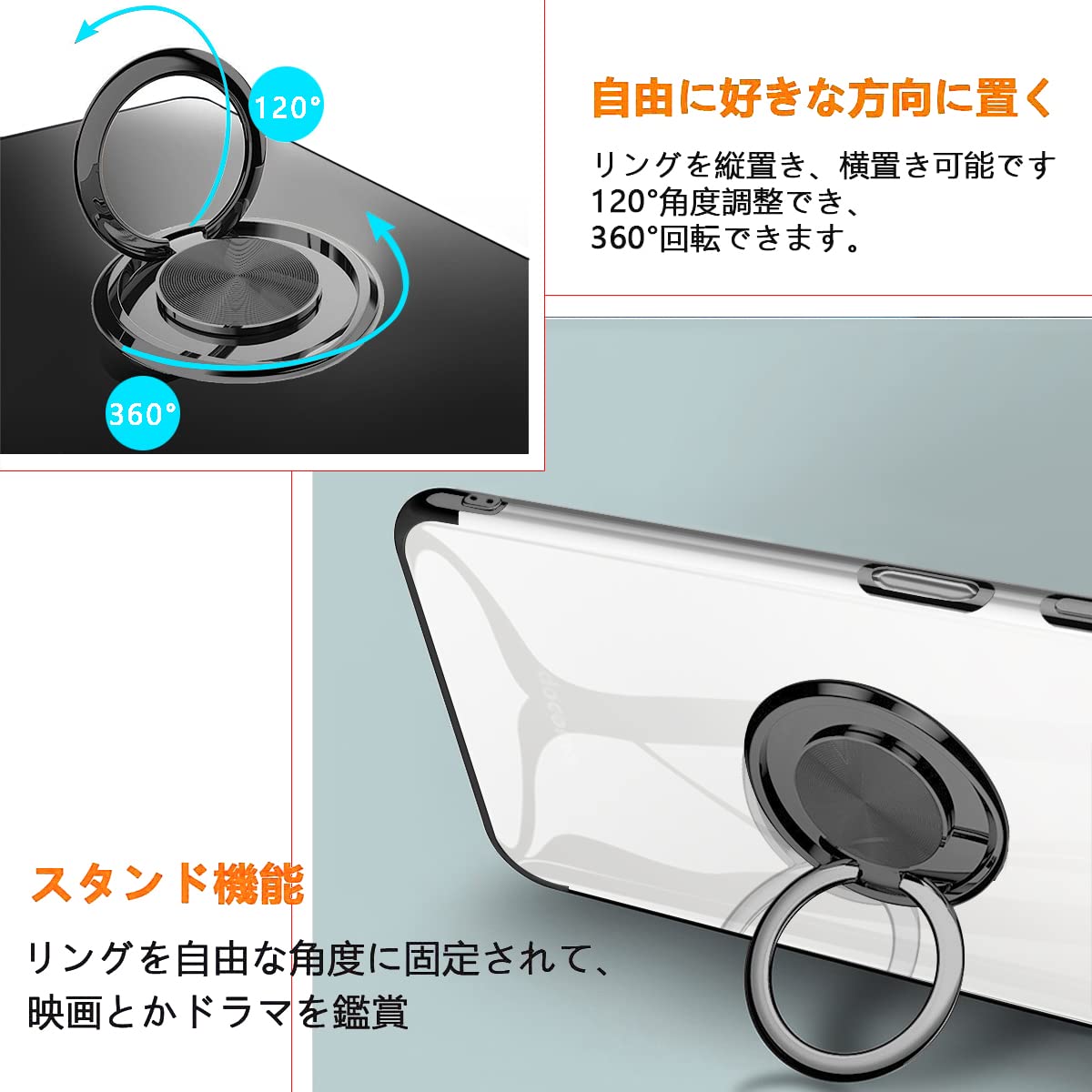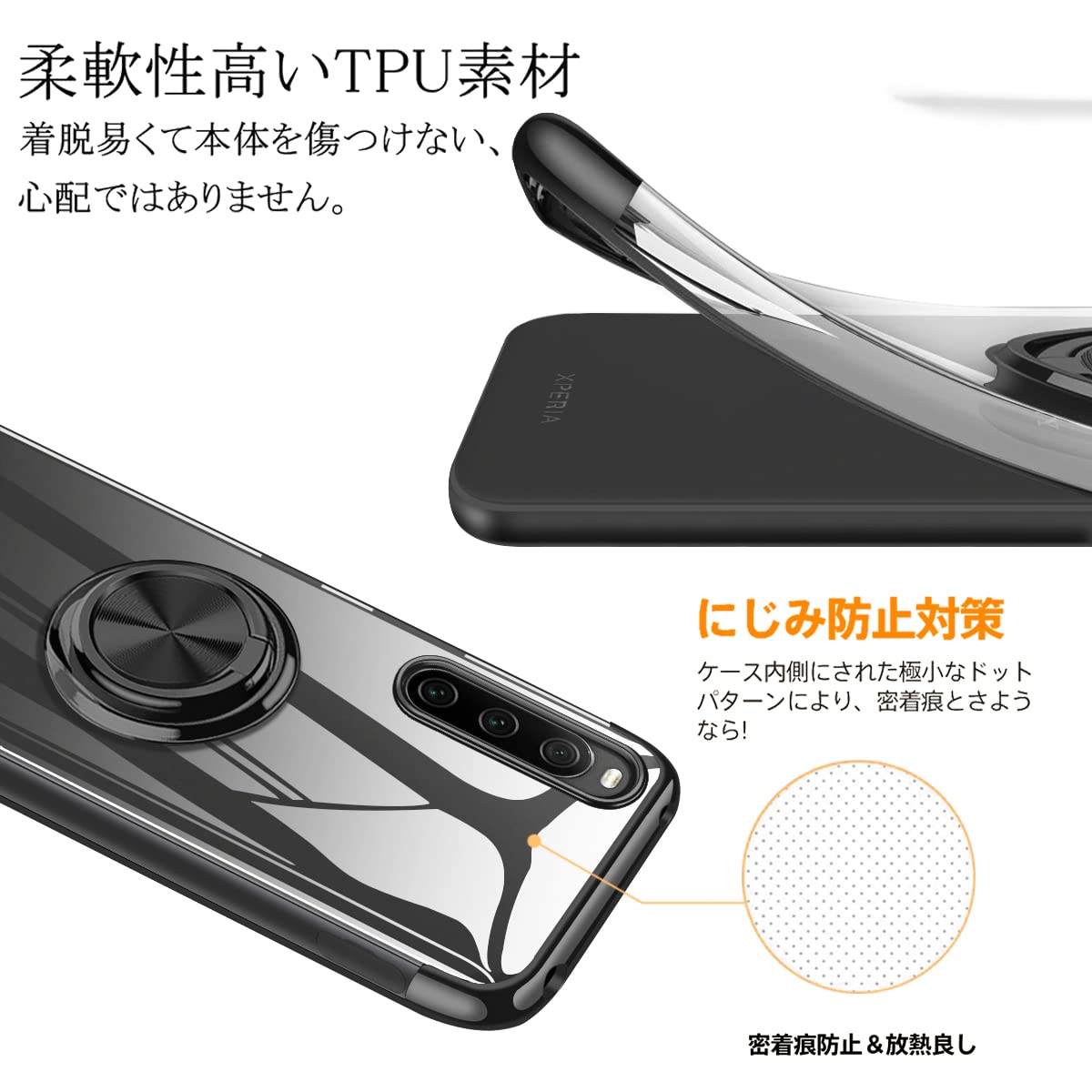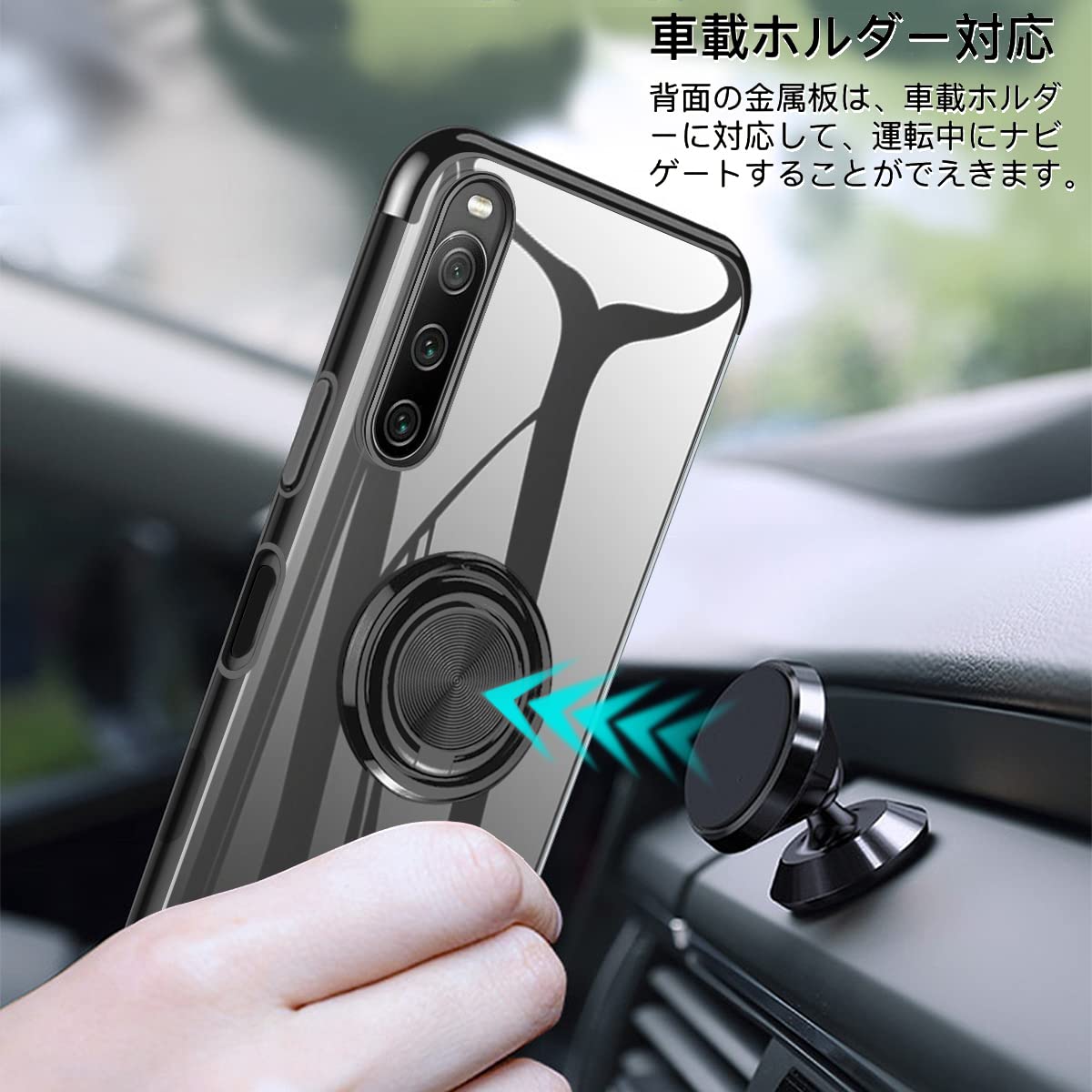Xperia 10 IV ケース リング ソニー SO-52C カバー 5G対応 SOG07 スマホケース クリア TPU 耐衝撃 滑り止め 黒 メッキ加工 一体型 スタンド機能 車載ホルダー ストラップホール付き Sony エクスペリア10IV ケース ブラック