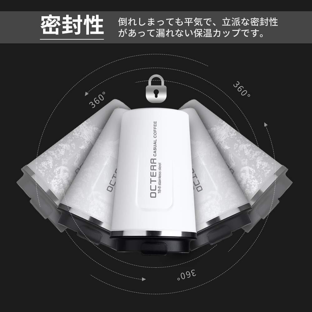OCTERR マグカップ 保温 コーヒーカップ コンビニカップ 携帯マグ 保冷 タンブラー 真空断熱 ステンレス製 蓋付き 持ち運び 直接ドリップ プレゼントに (ホワイト 380ml)