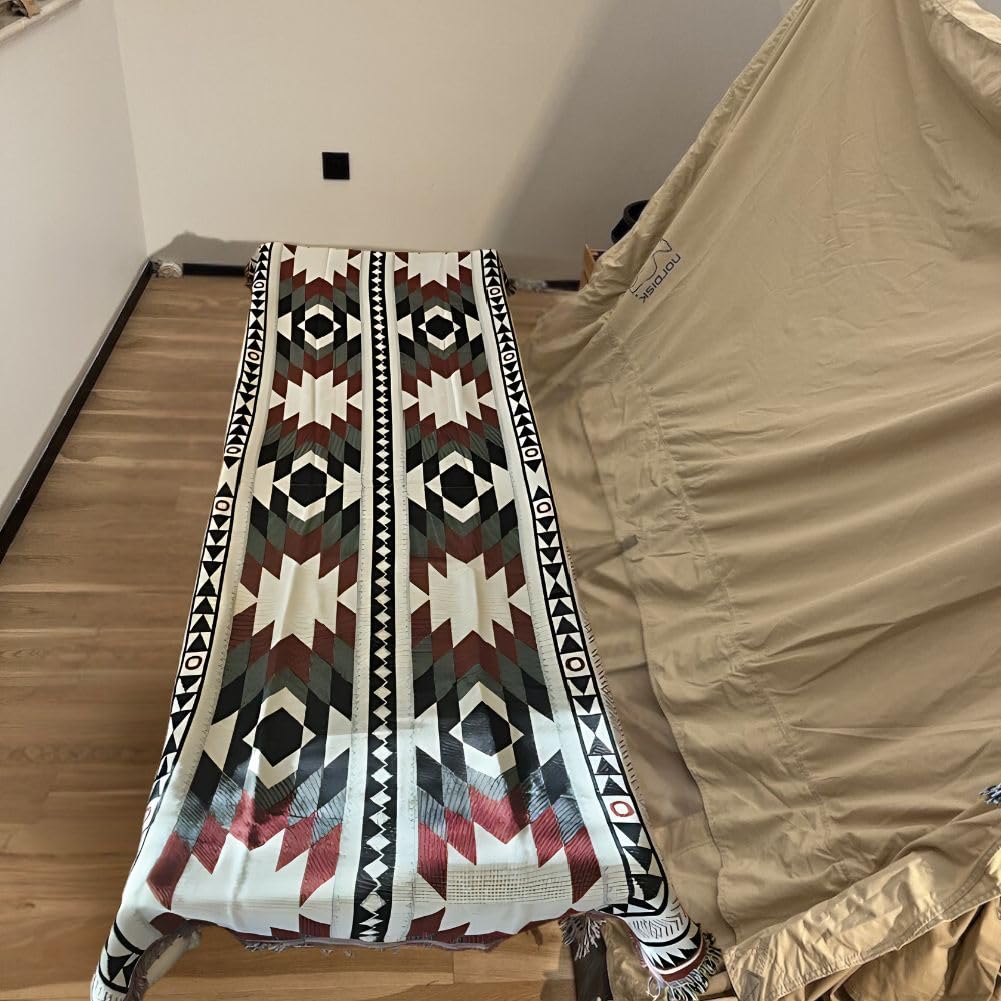 【室内でも大活躍】アウトドア用だけでなく、室内での普段使いにもおすすめです。ソファの上やフロアーマットとしてもお使いただけます。1枚広げるだけでぐっと雰囲気を盛り上げ、寛ぎの空間を彩ります。