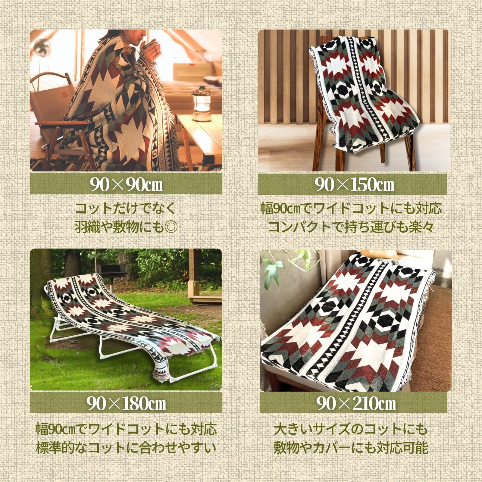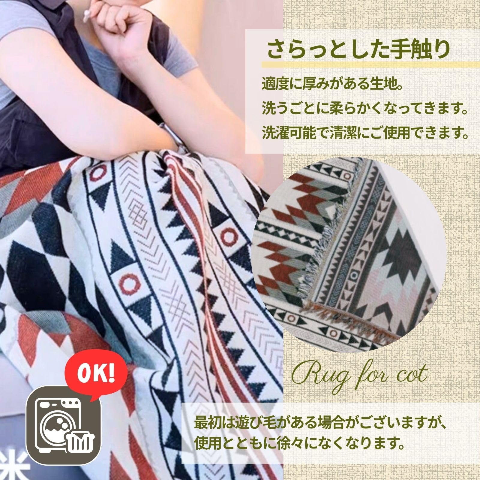 【人気商品】コット用ラグ キャンプ ラグマット オルテカ柄 キリム アウトドア 民族柄 マルチカバー リバーシブル ブランケット (ジオメトリック柄 90㎝×210㎝)