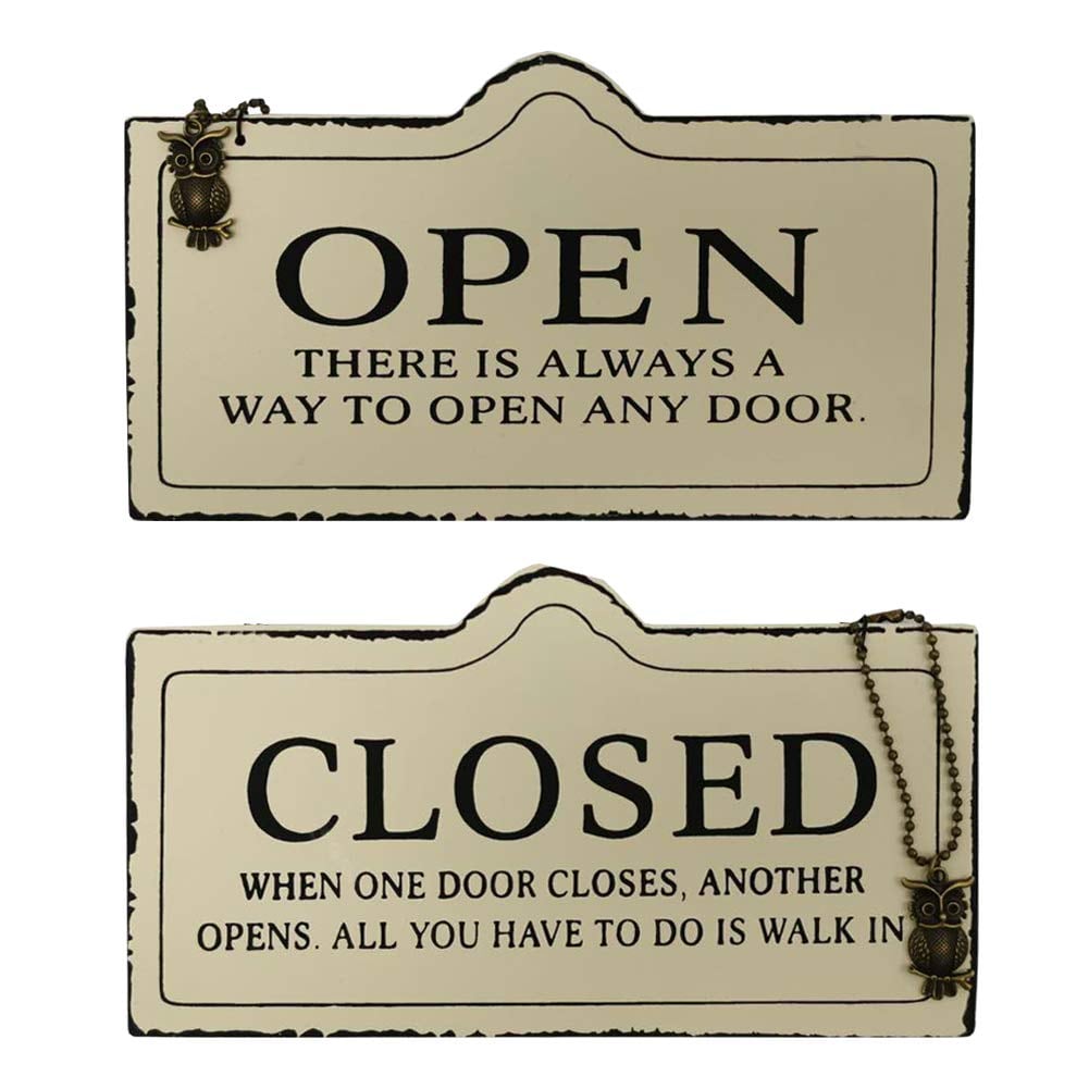 IRIWA ドアプレート オープン クローズ お店看板 ビンテージ風 木製 OPEN CLOSED 両面 アンティーク 吊り下げ かんばん ベージュ ブラック二色 (ベージュ)