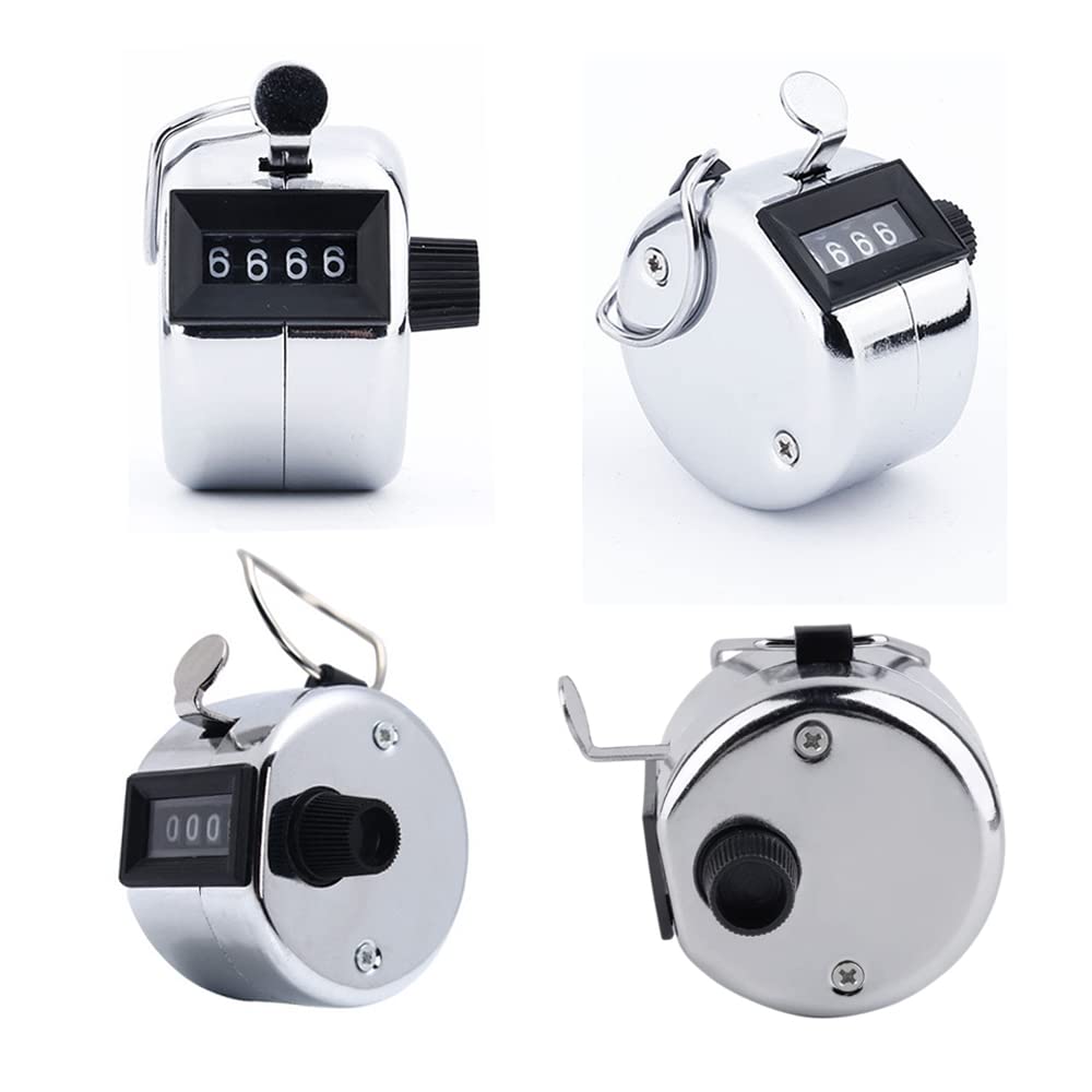 DFsucces カウンター 2個入 金属製 数取器 手持ち カウント 4桁 手動測定 リセット可能 機械式 小型 防水 軽量 携帯便利 スポーツ競技用 (シルバー)