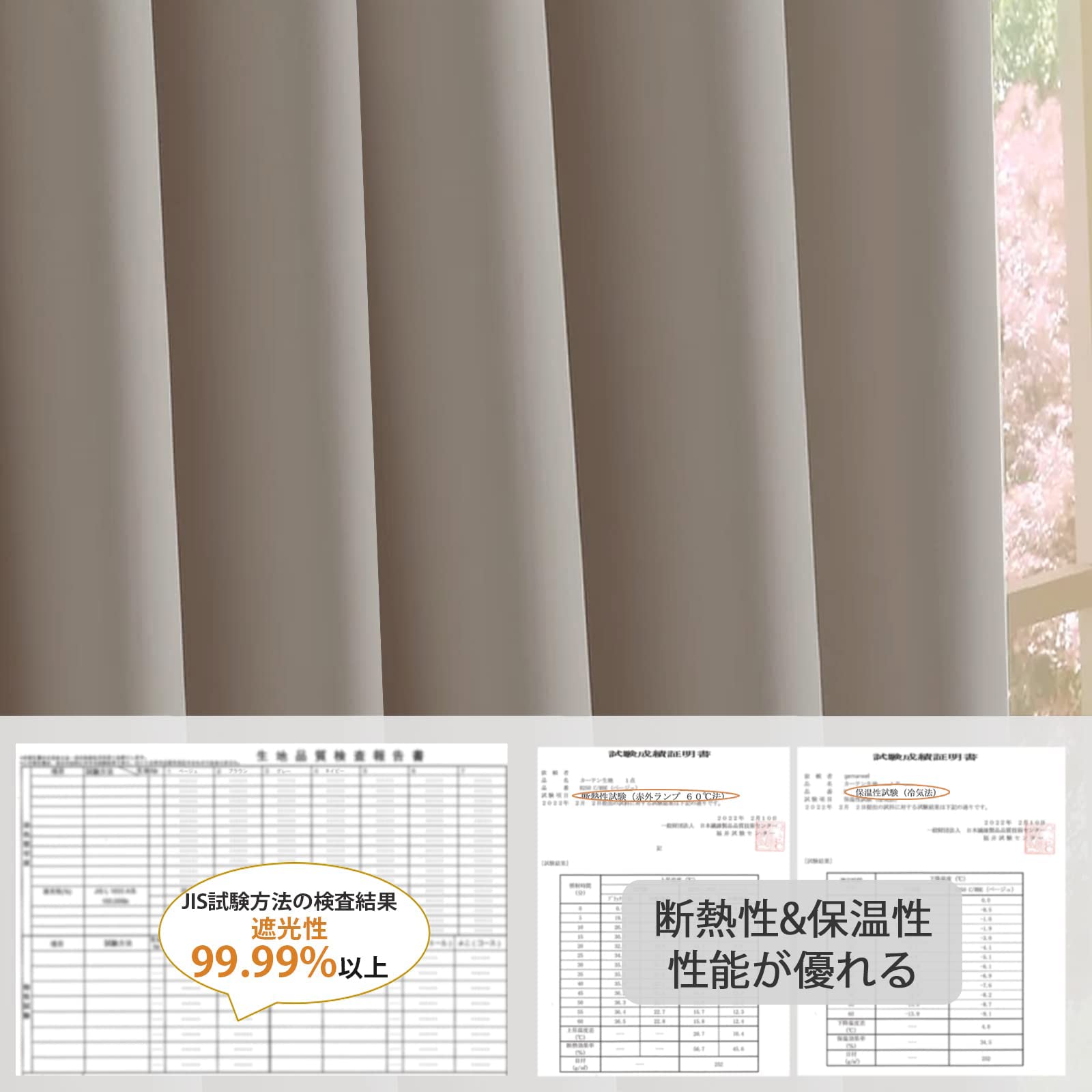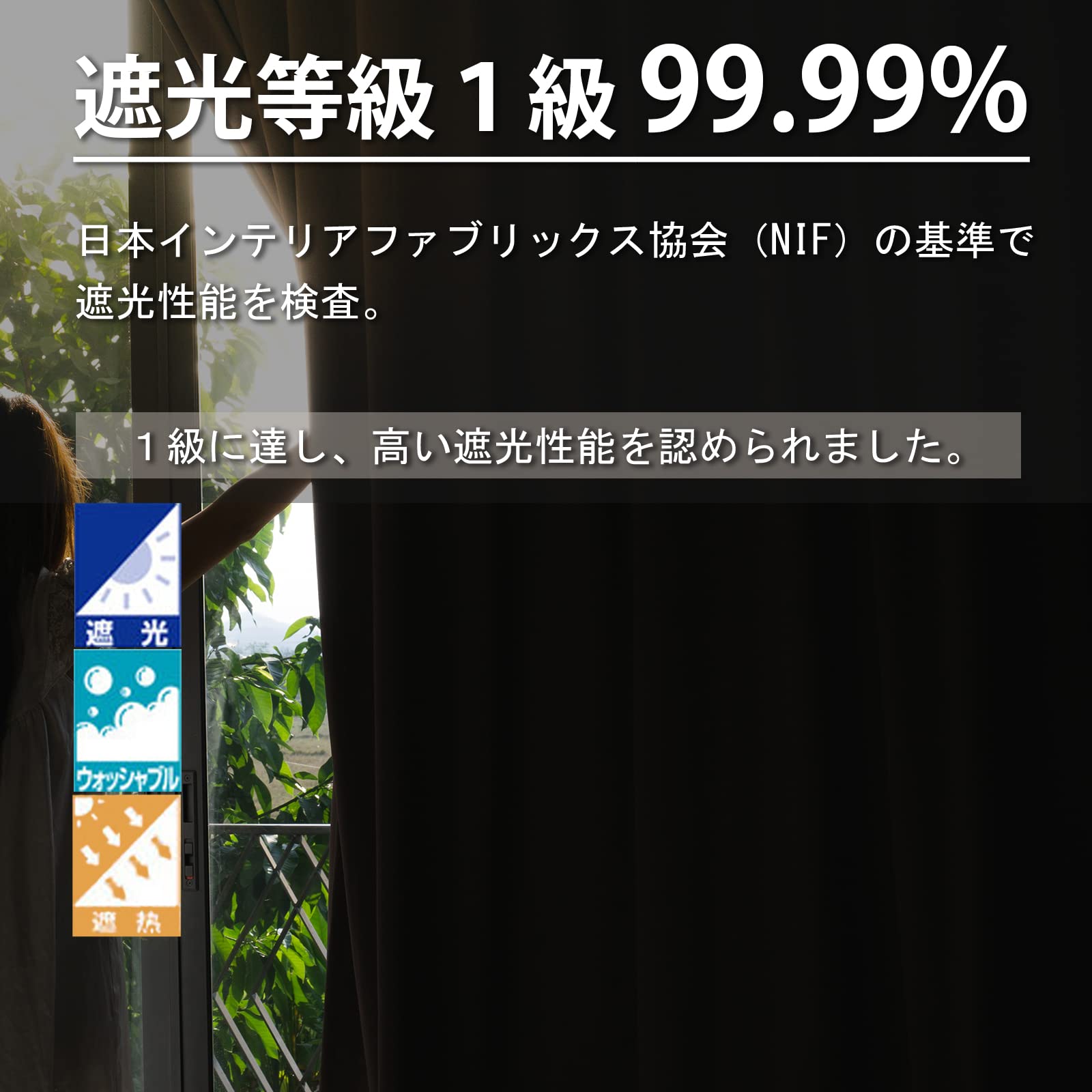 1級遮光:250gsmポリエステル生地(三層構造)で仕上げた一級遮光カーテン、遮光率は99.99%以上、外からの光をほとんど通さなく、昼間でもぐっすり眠れます。ホームシアターを楽しんでいただき、室内の光が外に漏れることを防止し、外から部屋中の様子が見えなく、プライバシーをしっかりと守ります。一人暮らしの女性により安心感を与えます。(カーテンの遮光効果は色により若干差があるのでご理解の上、ご了承お願い致します。よりいい遮光効果を追求する方は、濃い色のカーテンをお勧め致します。)