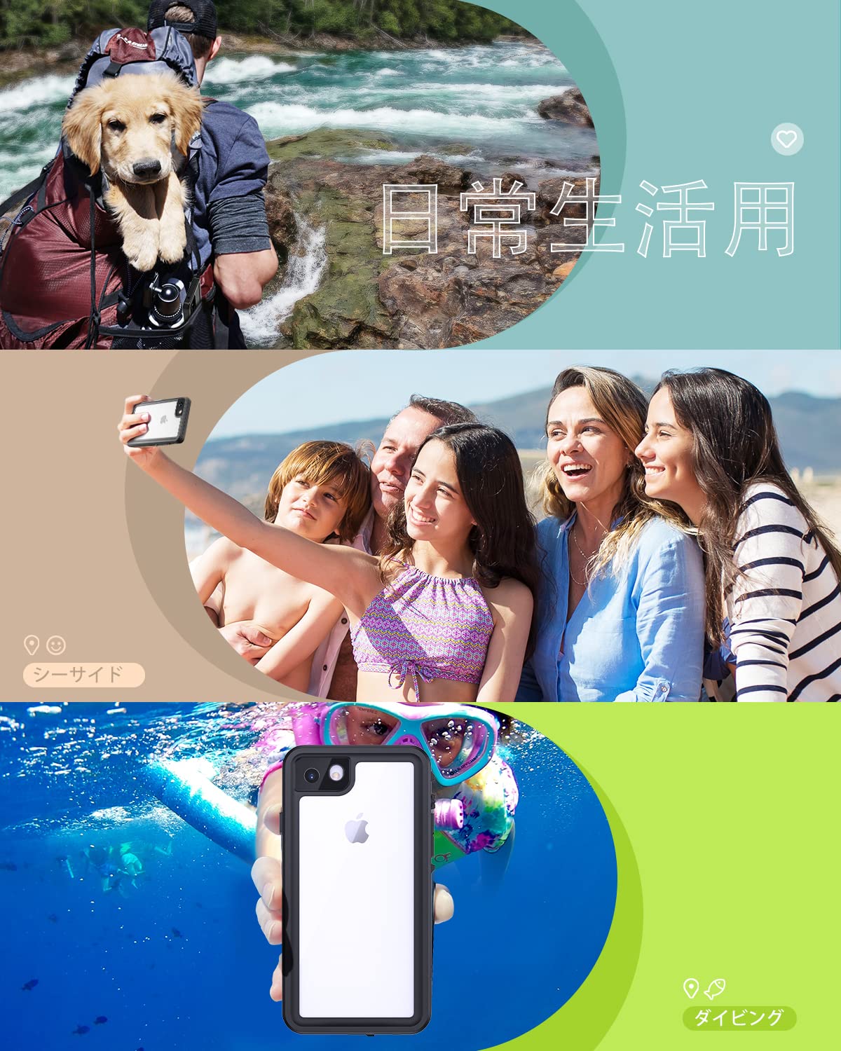 【一年間の安心】お客様に安心してご購入・お使い頂けるよう、このアイフォン7 防水ケースには買上げ日から一年間のを設けております。初期不良・使用中の自然故障等万一この期間中に製品がご利用頂けなくなった場合は、交換対応を提供致します(通常使用での製品不良に限ります)。アイフォン7 防水ケースについて何か疑問点ありましたら、いつでもお気軽にご連絡ください。