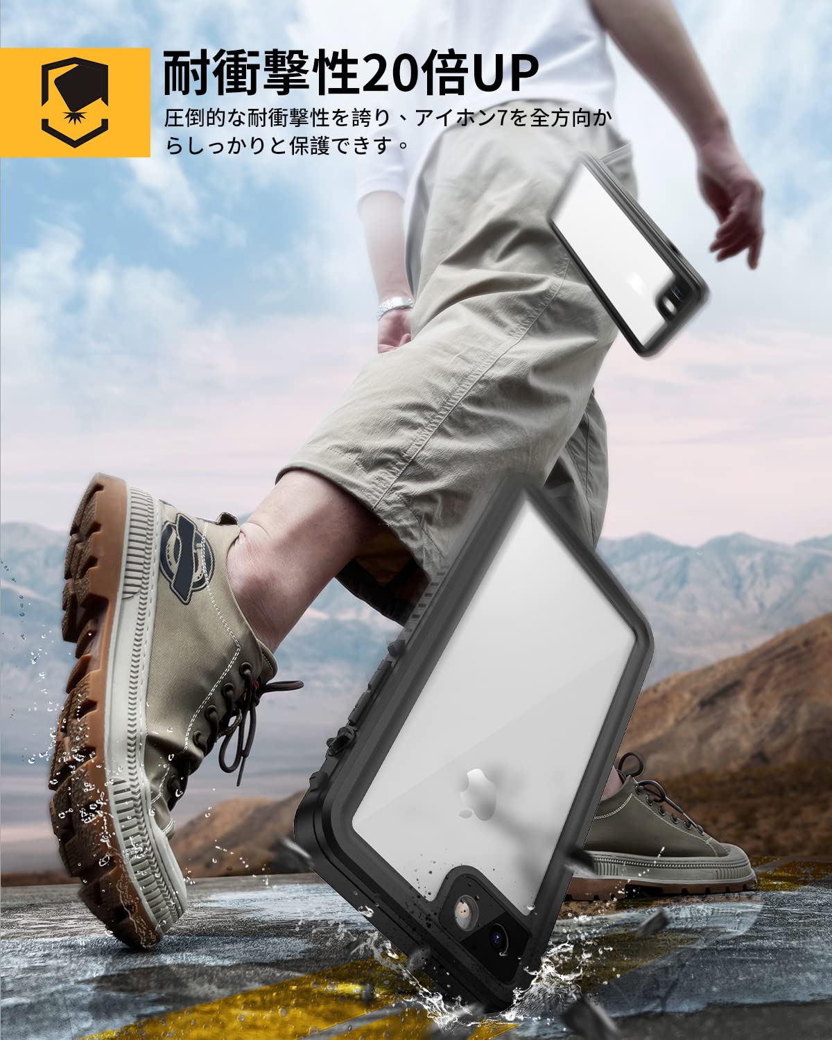 【強防衝撃力・360°保護】軍用MIL規格810G−516防振材料が採用されていますので、衝撃にとても強いです。iPhone SE3 防水ケースの嵌め込み式前カバーと透明バックカバーの組み合わせにより、360°全方位からiPhone SE 3を保護してくれます。落下、衝撃、擦れ傷など一切心配ありません。粉塵も中に入らない、砂や埃が舞う過酷な環境でも端末をしっかり包んで保護します。