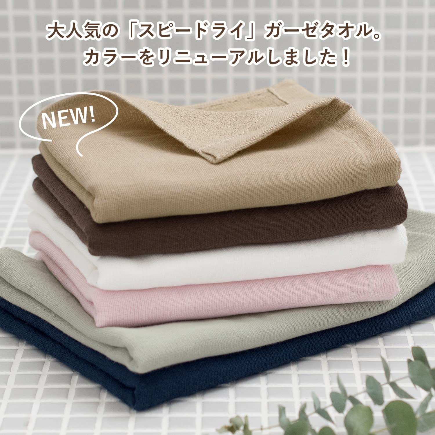 ブルーム 日本製 ガーゼタオル フェイスタオル 3枚セット スピードライ 泉州タオル 速乾 軽量 薄手 綿100% (ブラウン)