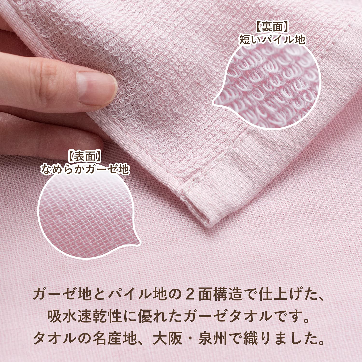 【やわらかガーゼ】市販のガーゼタオルよりも細くて柔らかい糸を使用し、しなやかで優しい使い心地に仕上げました。