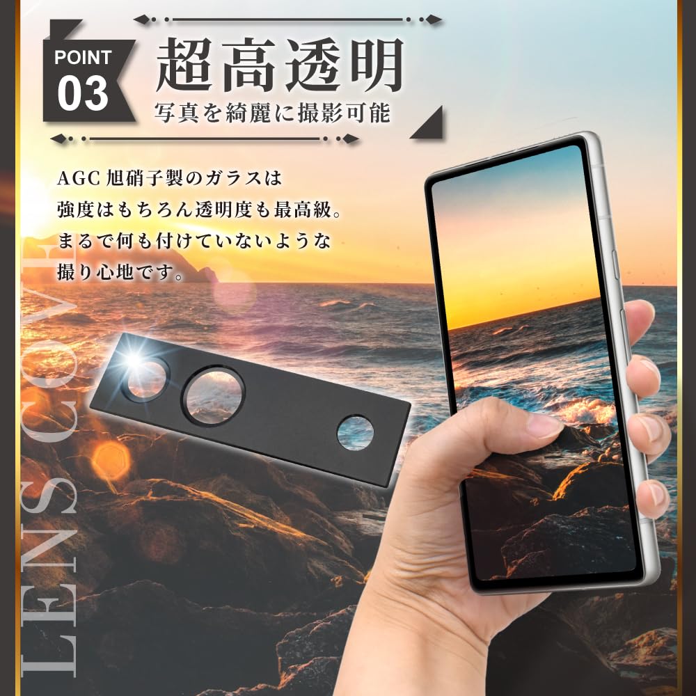 【高品質なカメラレンズフィルム】レンズフィルムは日本のAGC旭硝子を使用し、表面はフッ素コーティング、プラズマ溶射処理を施しています。本体カメラを全面覆うフルガードタイプです。