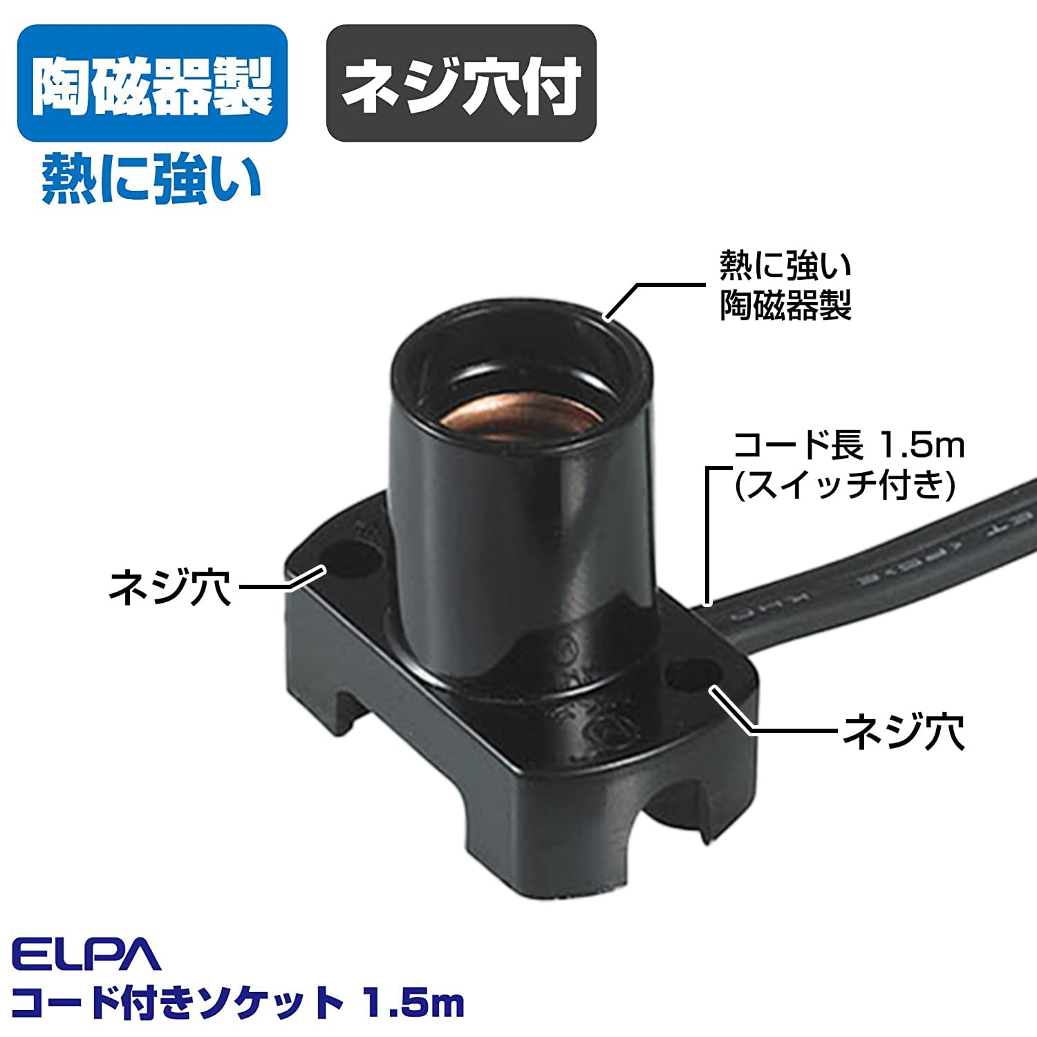 【特価商品】エルパ (ELPA) コード付ソケット 照明 簡易照明 電球 E12 中間スイッチ 1A 125V ブラック KP-M1215NH(BK)