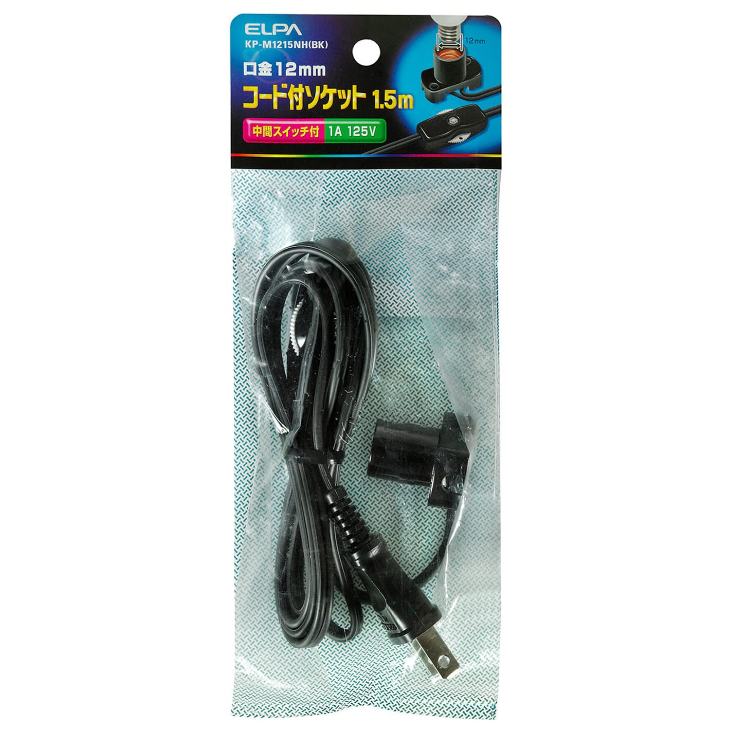 エルパ (ELPA) コード付ソケット 照明 簡易照明 電球 E12 中間スイッチ 1A 125V ブラック KP-M1215NH(BK)