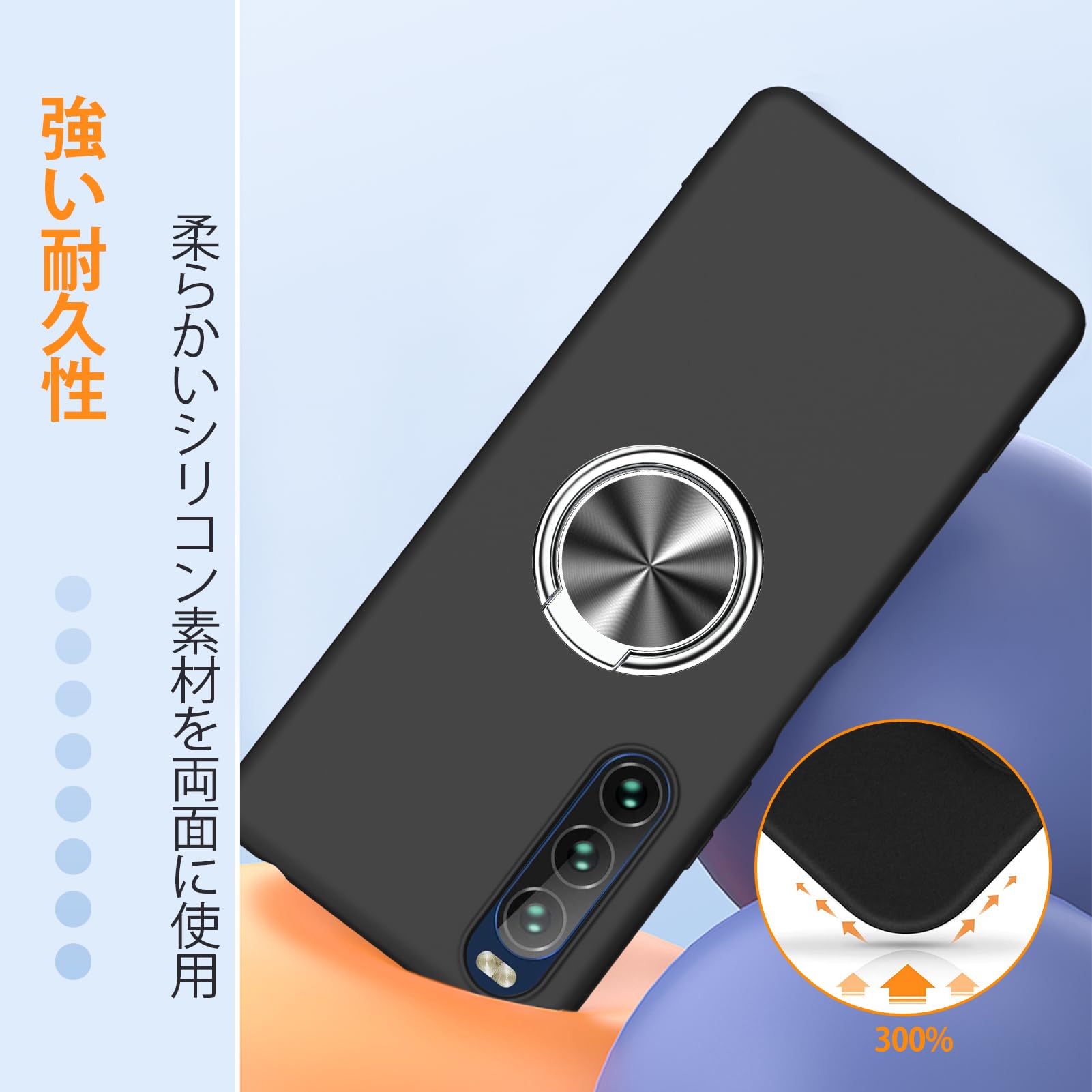 【スタンド機能】:ケースを横置きにするとスタンド機能になり、持たず動画鑑賞などを楽しむことができます。一指着る式で、指がリングに通り抜け、片手で携帯を操作でき、落下防止します。