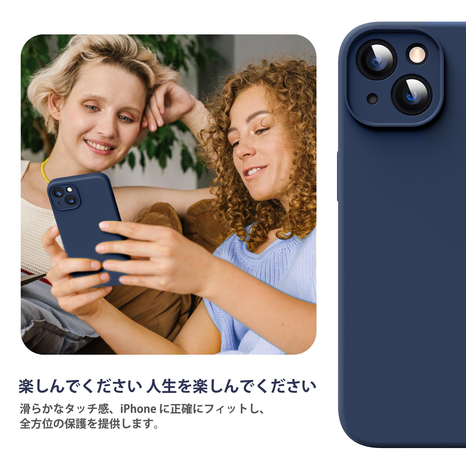Supdeal iPhone 14 ケース 対応液体シリコン [耐衝撃] [柔軟TPU液体シリコン] [ソフトタッチ] [レンズの全面保護] [指紋防止] [落下防止] [滑り防止] 軽量 4層保護 アイフォン 14 スマホカバー 6.1インチ(ネイビーブルー)