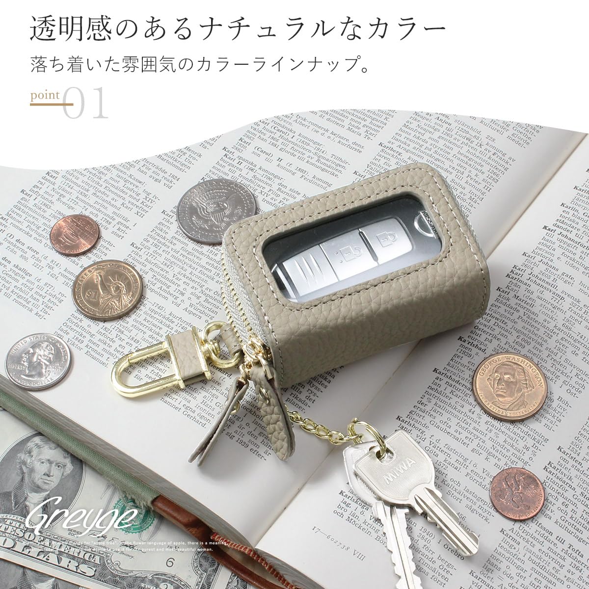 [ブランポム] キーケース レディース 本革 2個収納 窓付き スマートキー スマートキーカバー bp-2017