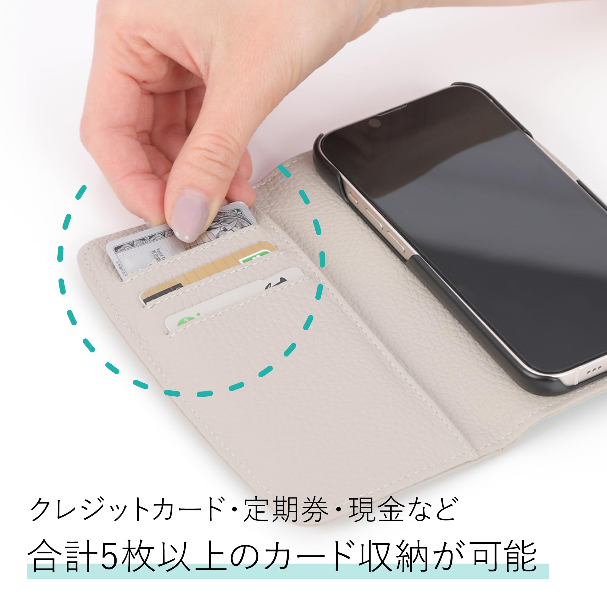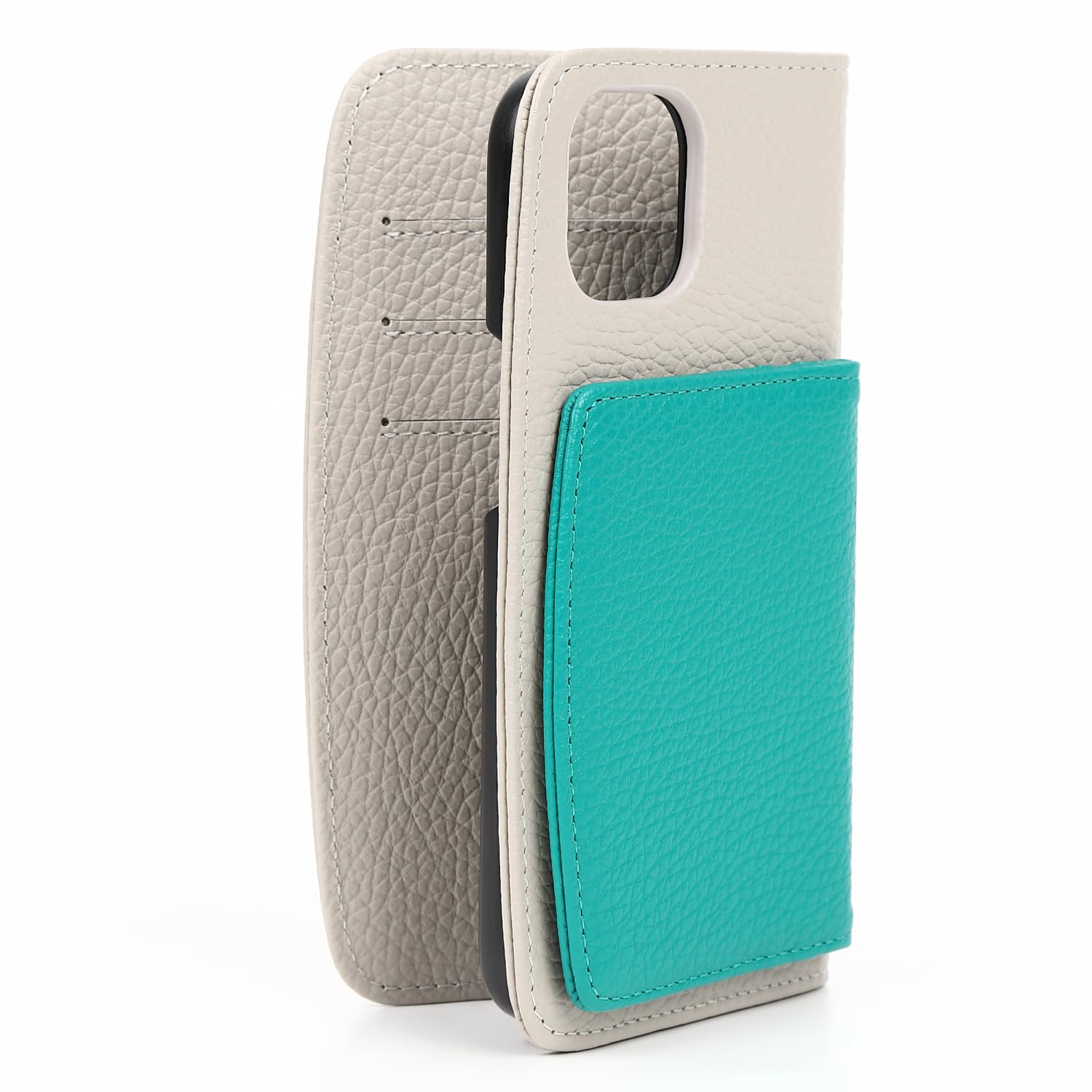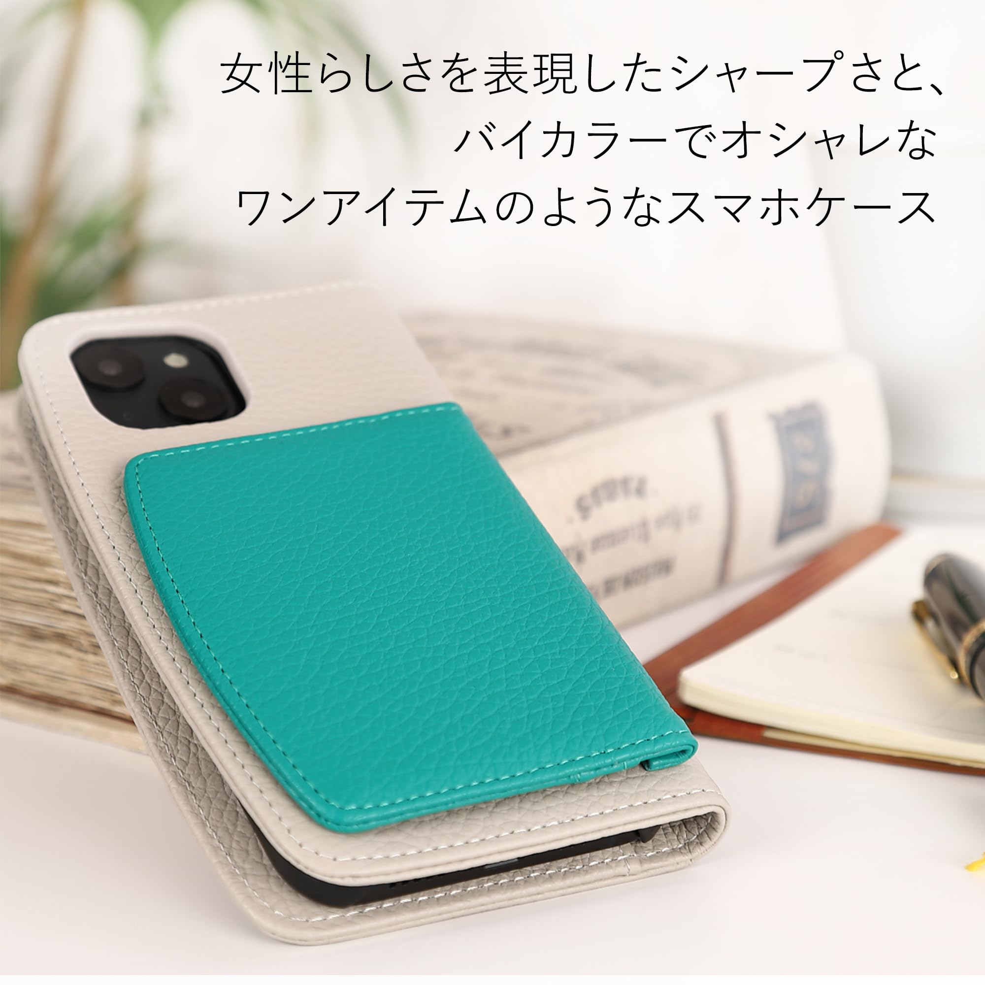 JULLY AND SHUSHU ジュリーアンドシュシュ iPhone15ケース アイフォンケース スマホケース 6.1インチ 女性用 レディース 本革 レザー かわいい オシャレ 人気 手帳型 ベージュ×グリーン