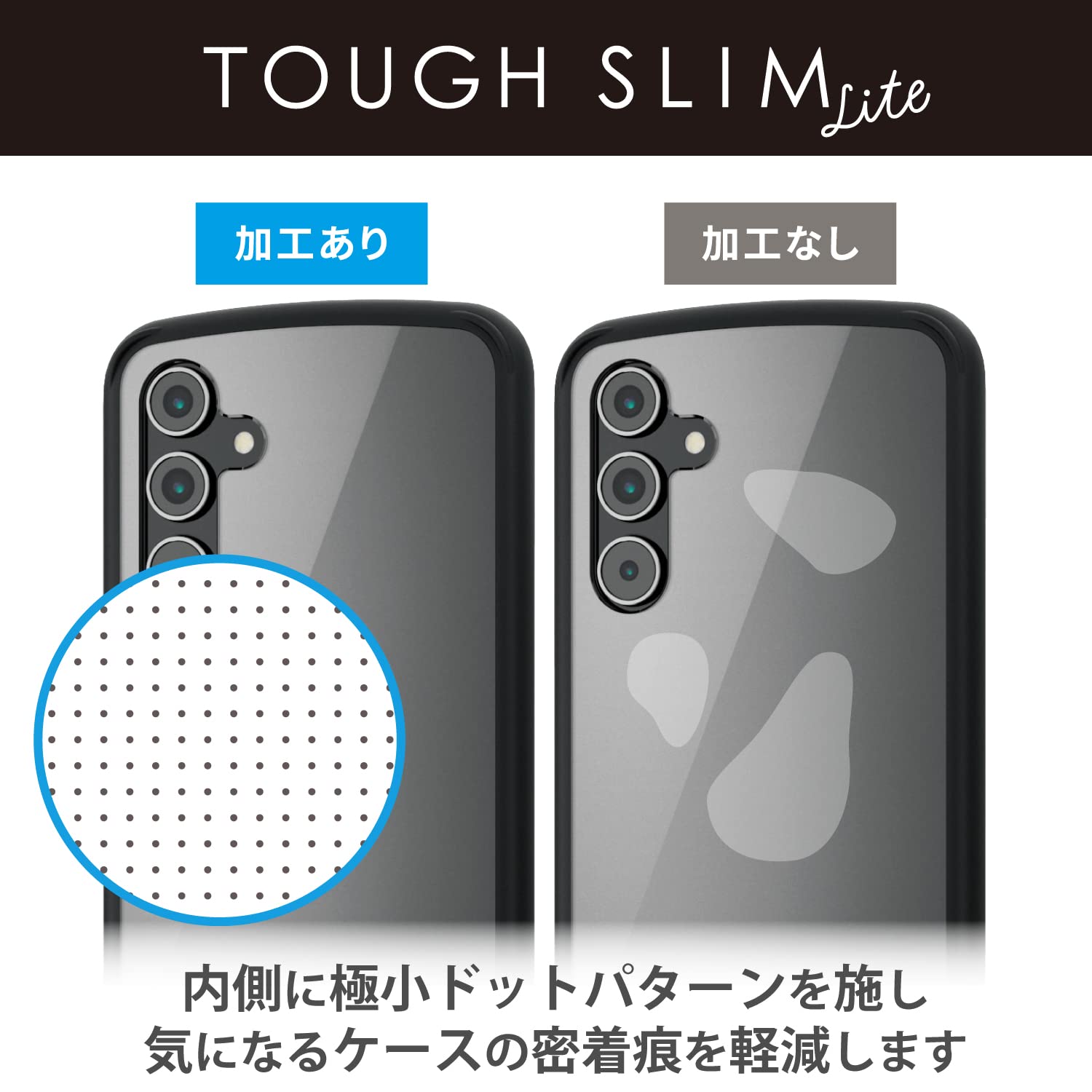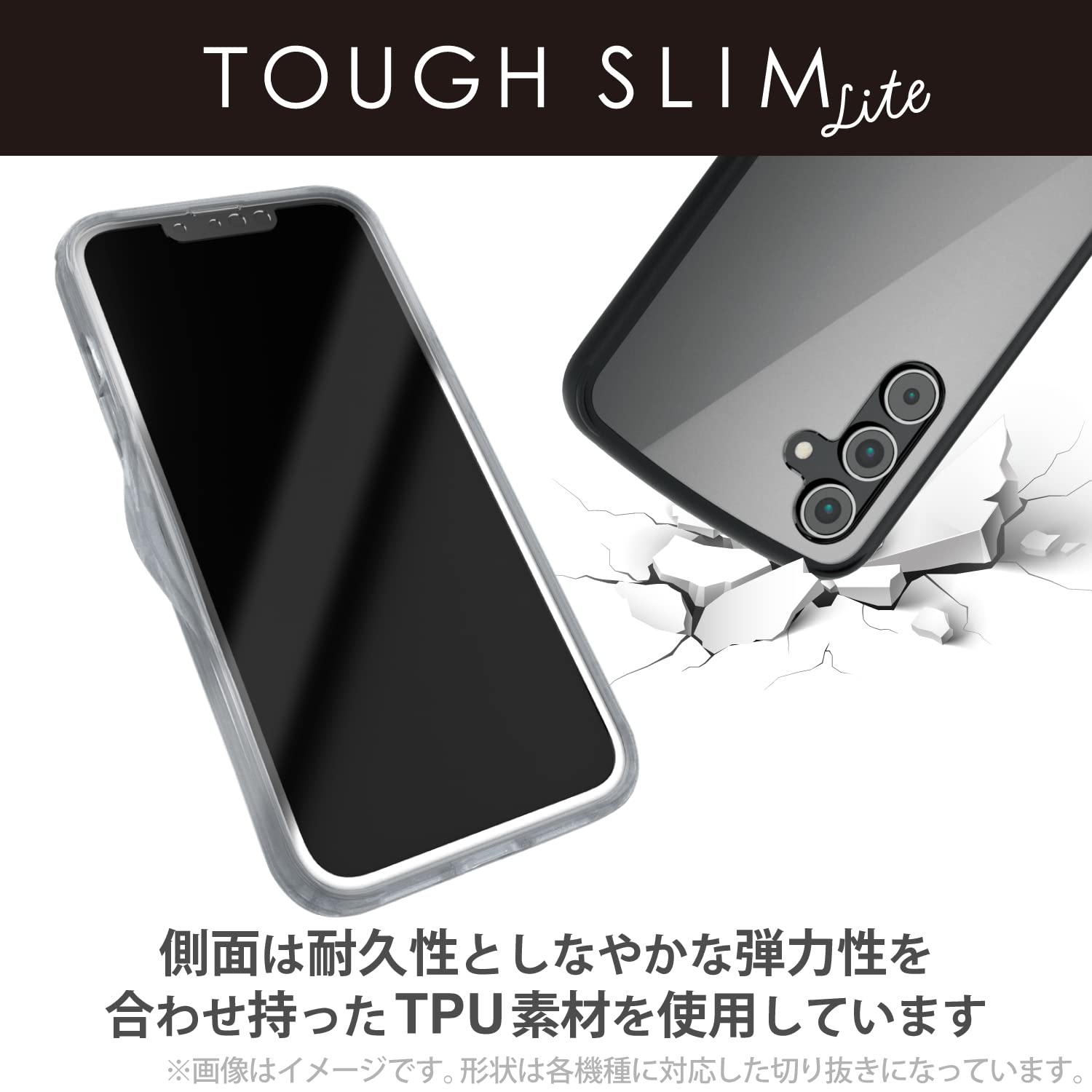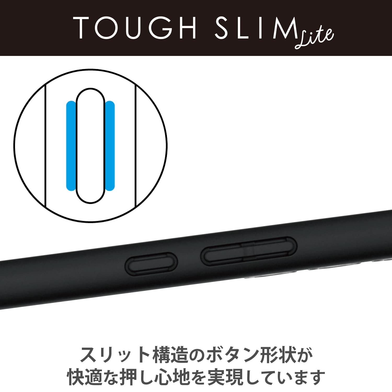 全周に配置した独自設計のエアークッションが衝撃を吸収し、背面には高硬度の特殊樹脂を採用した、TOUGH SLIM LITEケースです。