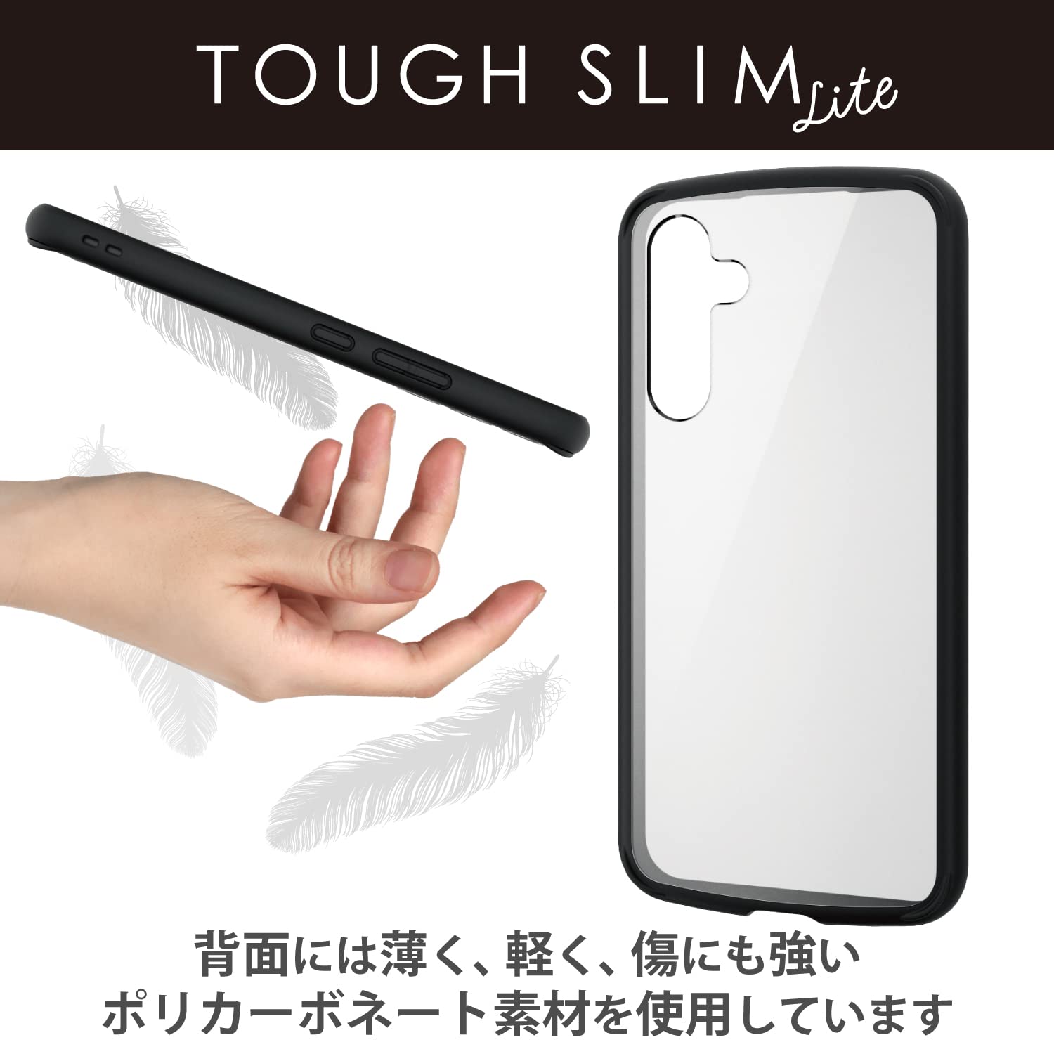 背面には高硬度の特殊樹脂を採用し、ケースを傷から保護します。端末のカラーをいかせるクリアタイプです。