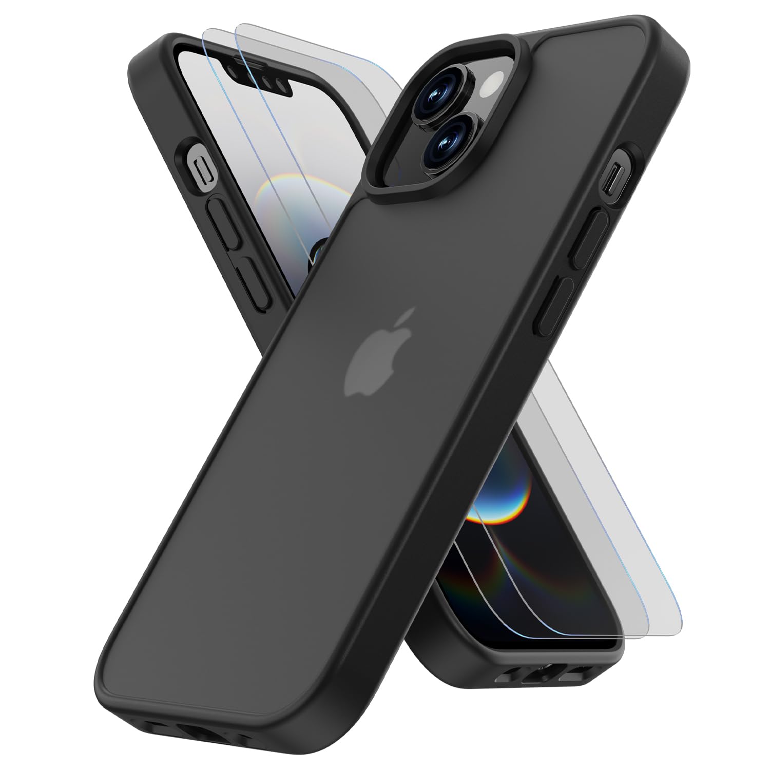 HEROMI iPhone 14/iPhone 13 用 ケース【強化フィルム2枚付き】米軍規格 いphone14/13 ケース 半透明 耐衝撃 指紋防止 滑り止め ワイヤレス充電 耐久性 全面保護 黄ばみなし 14/13スマホケース 6.1インチ用 ブラック