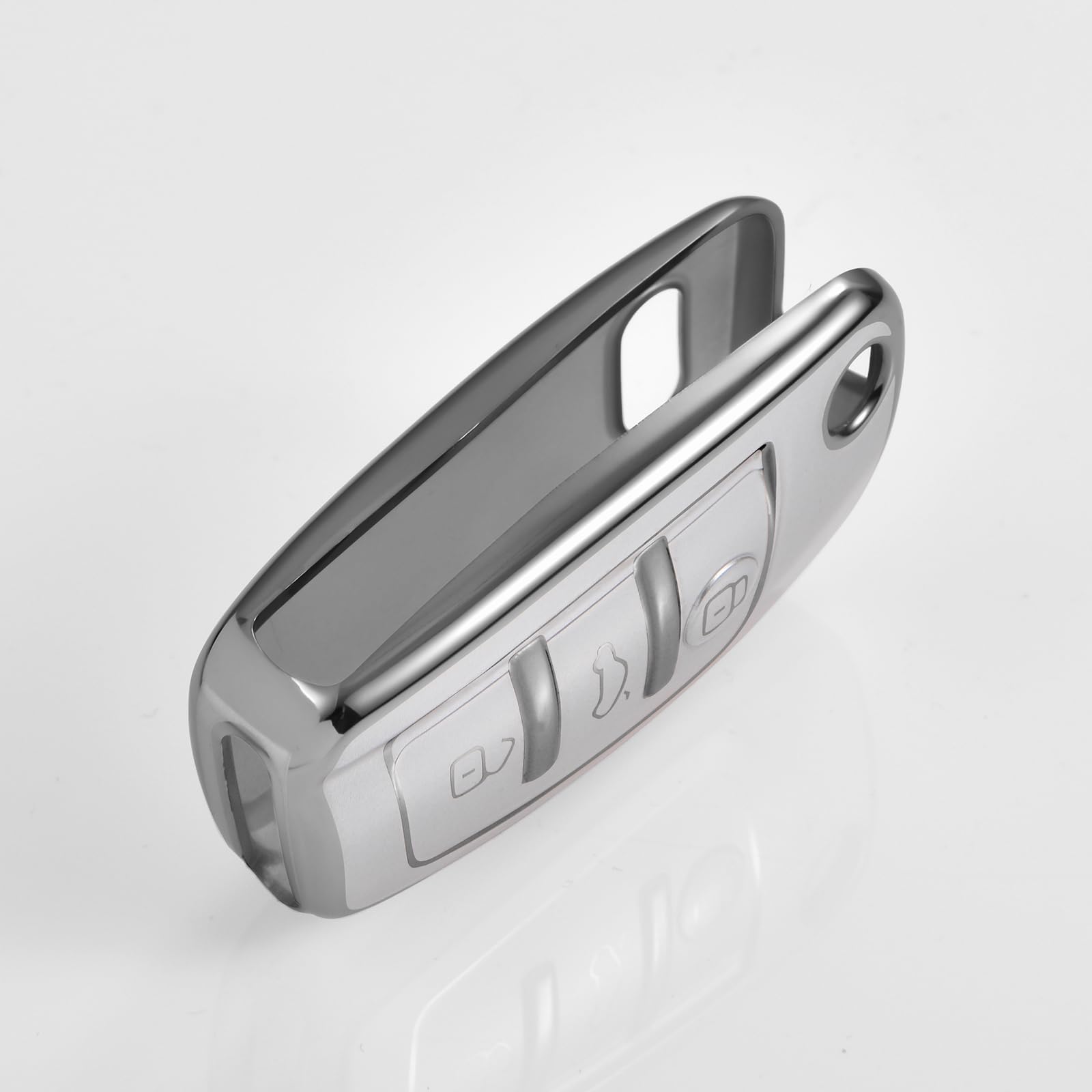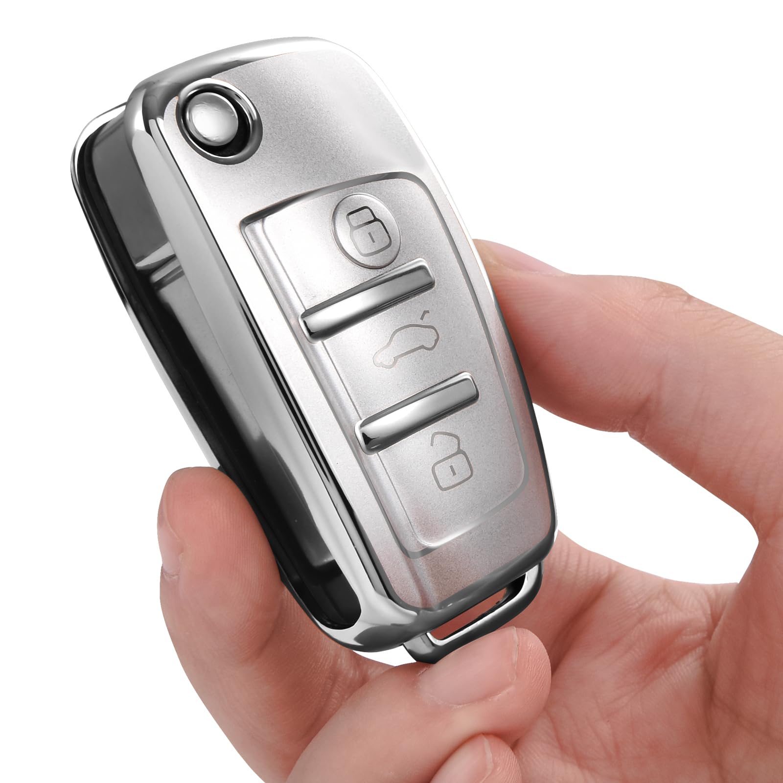 OATSBASF アウディ キーケース AUDI 専用 スマートキーケース 高級 TPU 汚れ 滑り傷 防止 A1 A3 Q2 Q3 R8 S3 S6 TT 専用 スタイリッシュ スマートリモコン キーカバー アウディ キーホルダーLS-シルバー