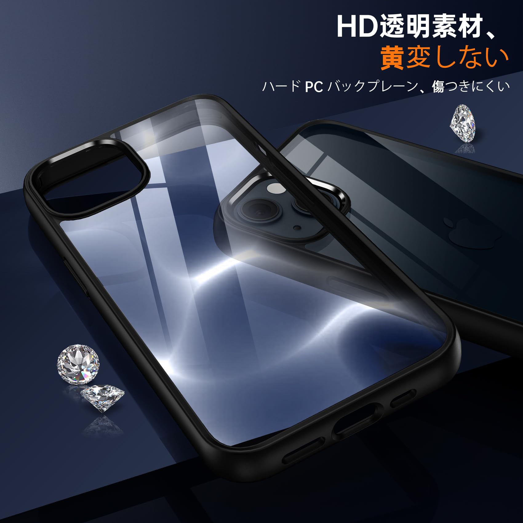 Supdeal iPhone 13用耐衝撃透明ケース 米軍MIL規格 SGS認証 黄ばみ防止 ワイヤレス充電対応 ストラップホール付き 耐久性 クリアで透明なハード背面パネル ソフトシリコンエッジ アイフォン13 スマートフォン保護カバー 6.1インチ(ブラック)
