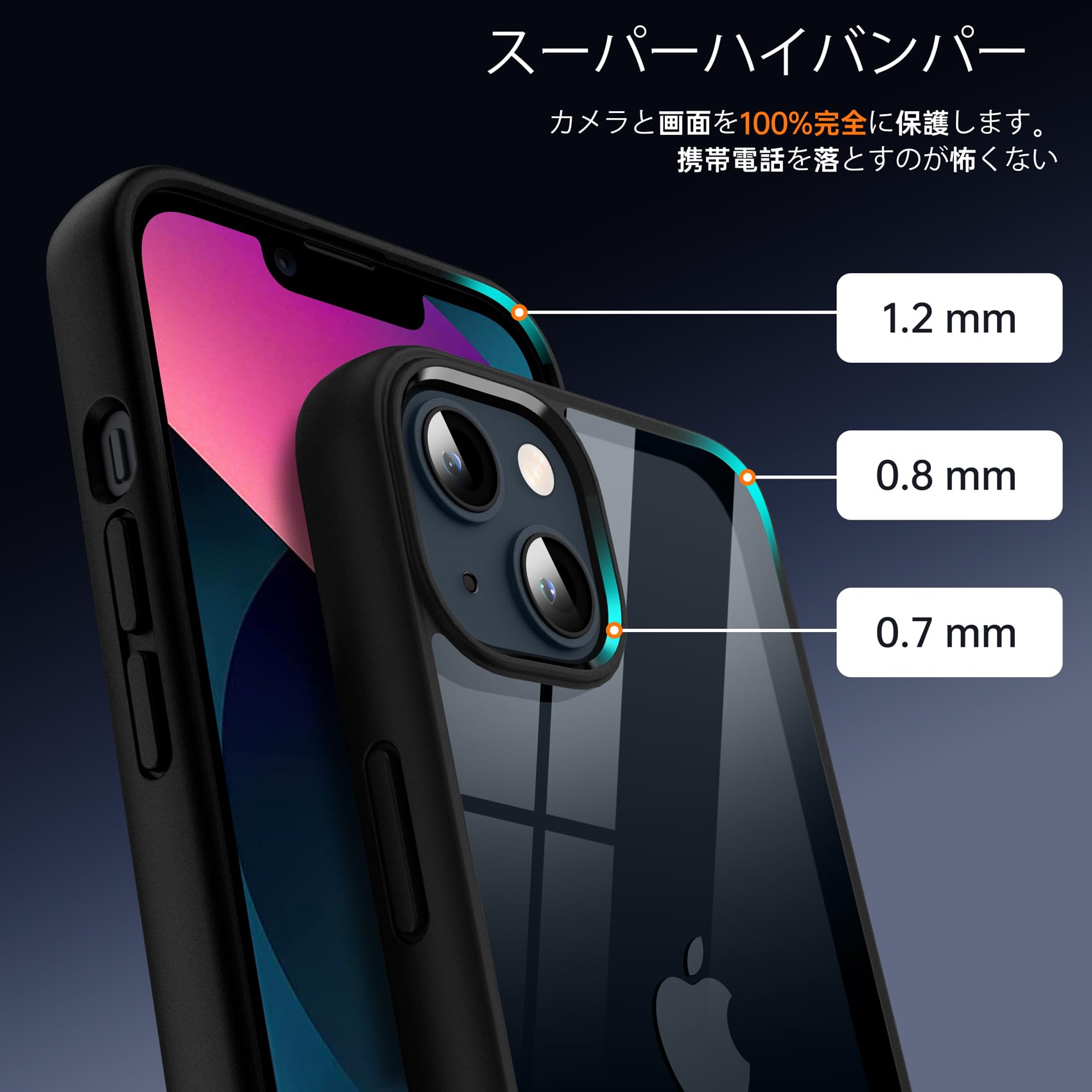 【米軍規格・SGS認証済み】Supdeal 防震透明スマートフォンケースは、iPhone 13と互換性があります。このケースは、米軍のMILテストおよびSGS落下試験の認証を取得しています。突起したベゼルは、画面とカメラを跌落や傷から保護し、カメラ部分には0.8mmのベゼル、画面部分には0.2mmのベゼルがあり、絶対に信頼できる製品です。