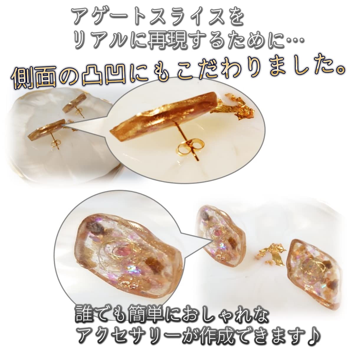?【業界初!横断面にも凹凸がある歪な形状により、アゲートスライスをよりリアルに美しく再現!】よりナチュラルな美しい形状にこだわり、今までのシリコン型には無かった、横断面の凹凸までこだわりました。シリコンはほどよく柔らかさで、型から抜きやすいです。