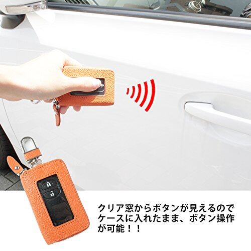 スマートキーケース クリア窓付き パープル 本革 キーケースASK-CM009