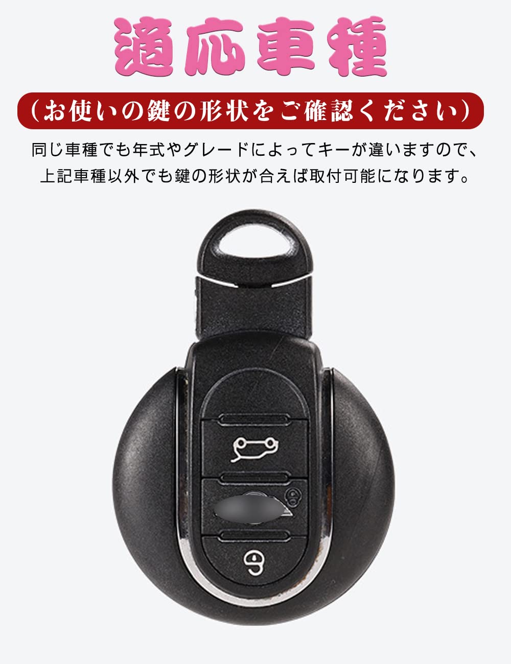 適応車種:BMW ミニ Fシリーズ F54 F55 F56 F57 F60 クーパー クーパーS クロスオーバー クラブマン カントリーマンなど(お使いの鍵の形状をご確認ください)※上記車種以外でも鍵の形状が合えば取り付け可能になります。購入する前に適合キーモデルの画像と一致しているかどうかをご確認してくださいませ。