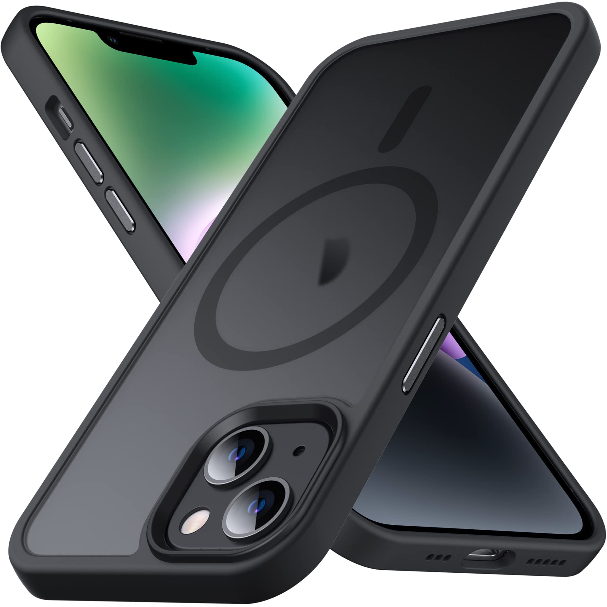 Anqrp iPhone 14 用 ケース [Magsafe対応] iPhone13ケース マグネット搭載 ワイヤレス充電対応 半透明 マット感 耐衝撃 米軍MIL規格 ストラップホール付き スマホケース アイフォン 14/13 カバー 6.1インチ ブラック