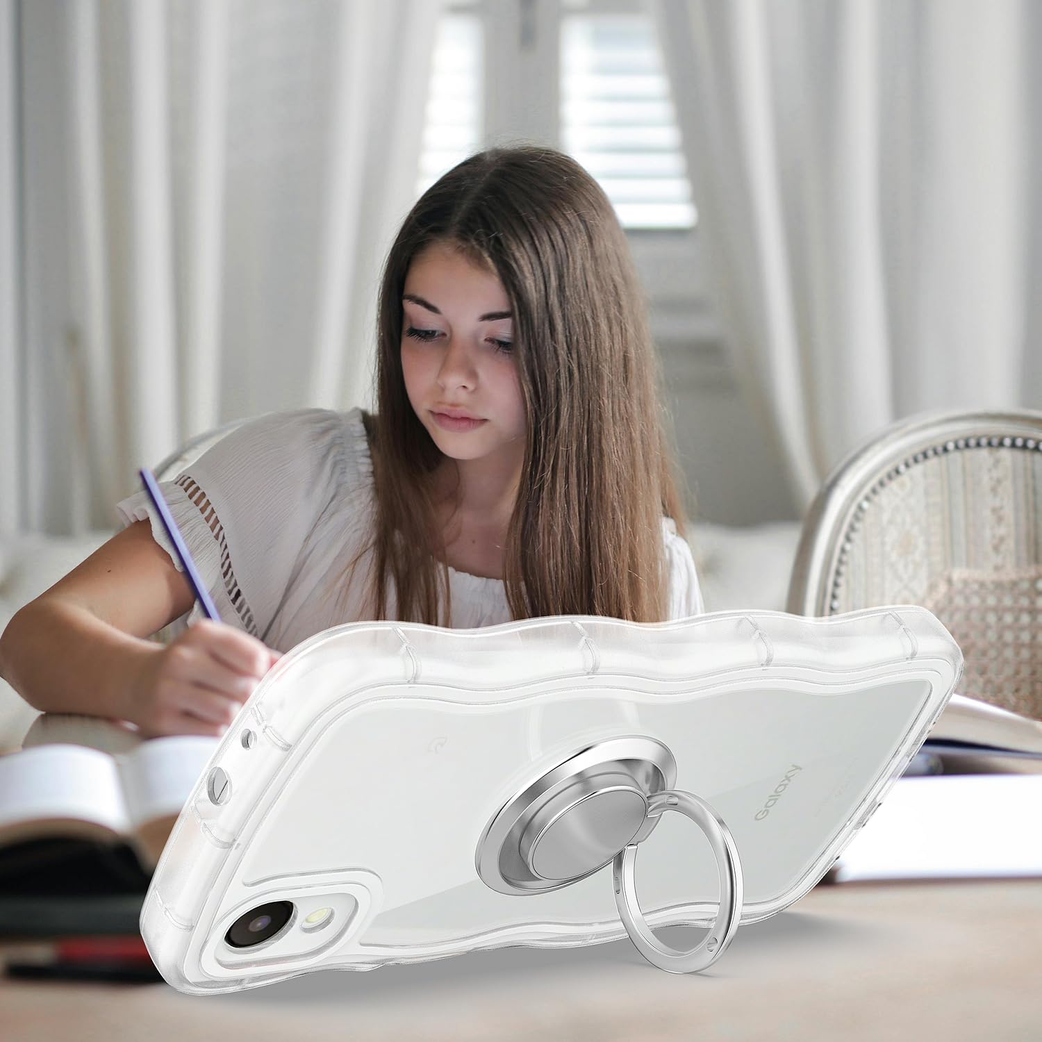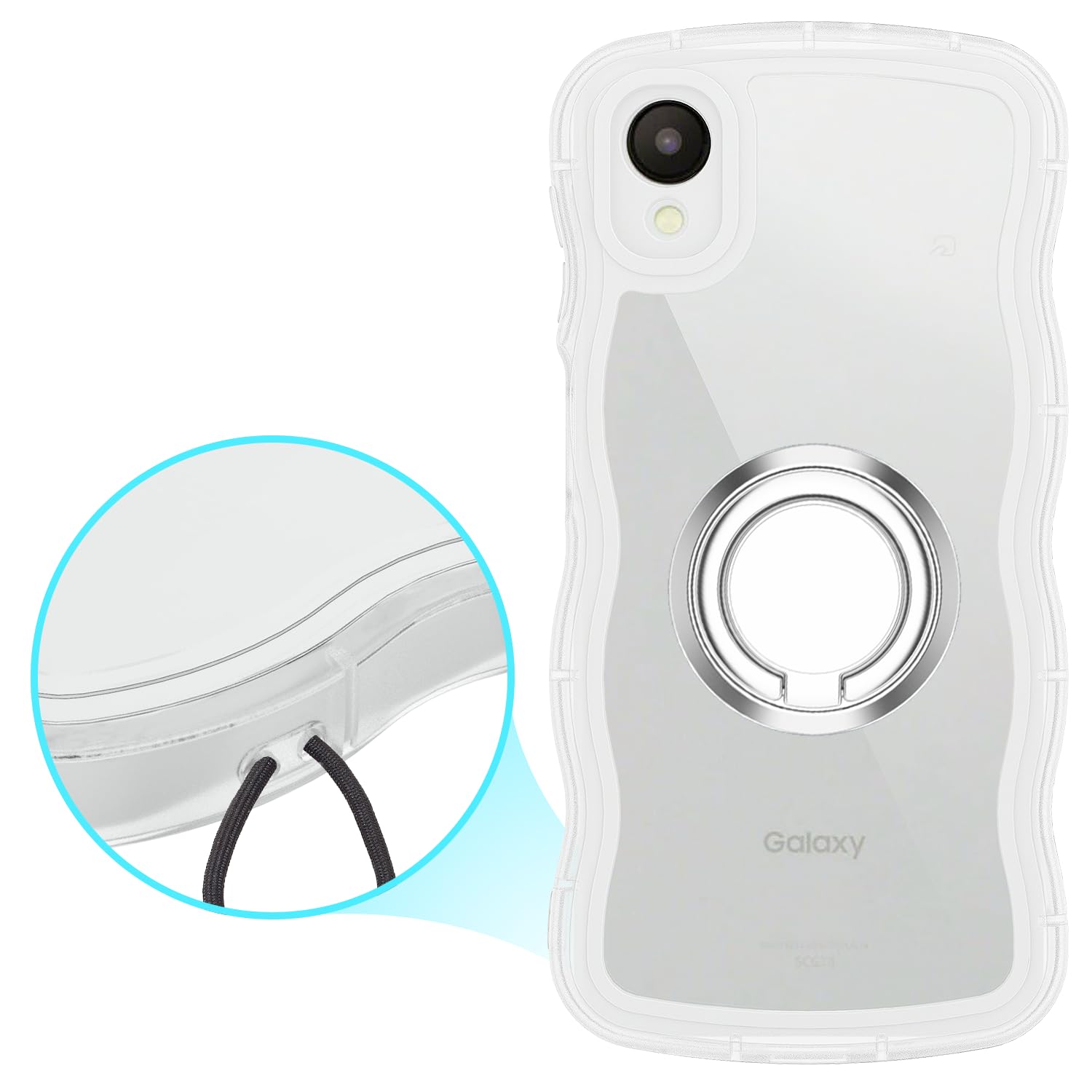 【特価セール】Galaxy A23 5G ケース クリア ウェーブ リング付き TPU波状のバンパー 透明 スマホケース かわいい うねうね ギャラクシーA23 5G SC-56C SCG18 ウェーブ デザイン 可愛い 韓国 女性用 薄型 人気 おしゃれ 耐衝撃 ストラップホール付き(クリア)