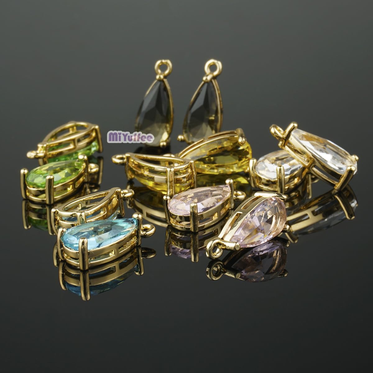 24年春夏の流行色となるクリア、ブルー、グリーン、ピンク、イエロー、灰茶の6色が揃え、あなたのアイデア次第でオリジナルのアクセサリーが手作りできちゃいます。高透明度と高輝度のあるストーンチャームは爽やかと見え、春夏の人気パーツとなります。
