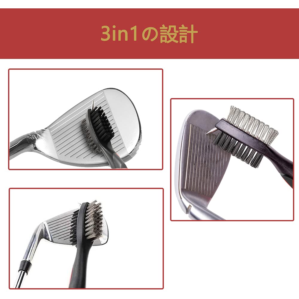 ゴルフ ブラシ 3in1 ゴルフクリーニングブラシ ゴルフクラブ清潔用ブラシ 両面携帯式ブラシ 伸ばすリールとカラビナクリップ付き 便利 軽量 多用途 (ブラック)