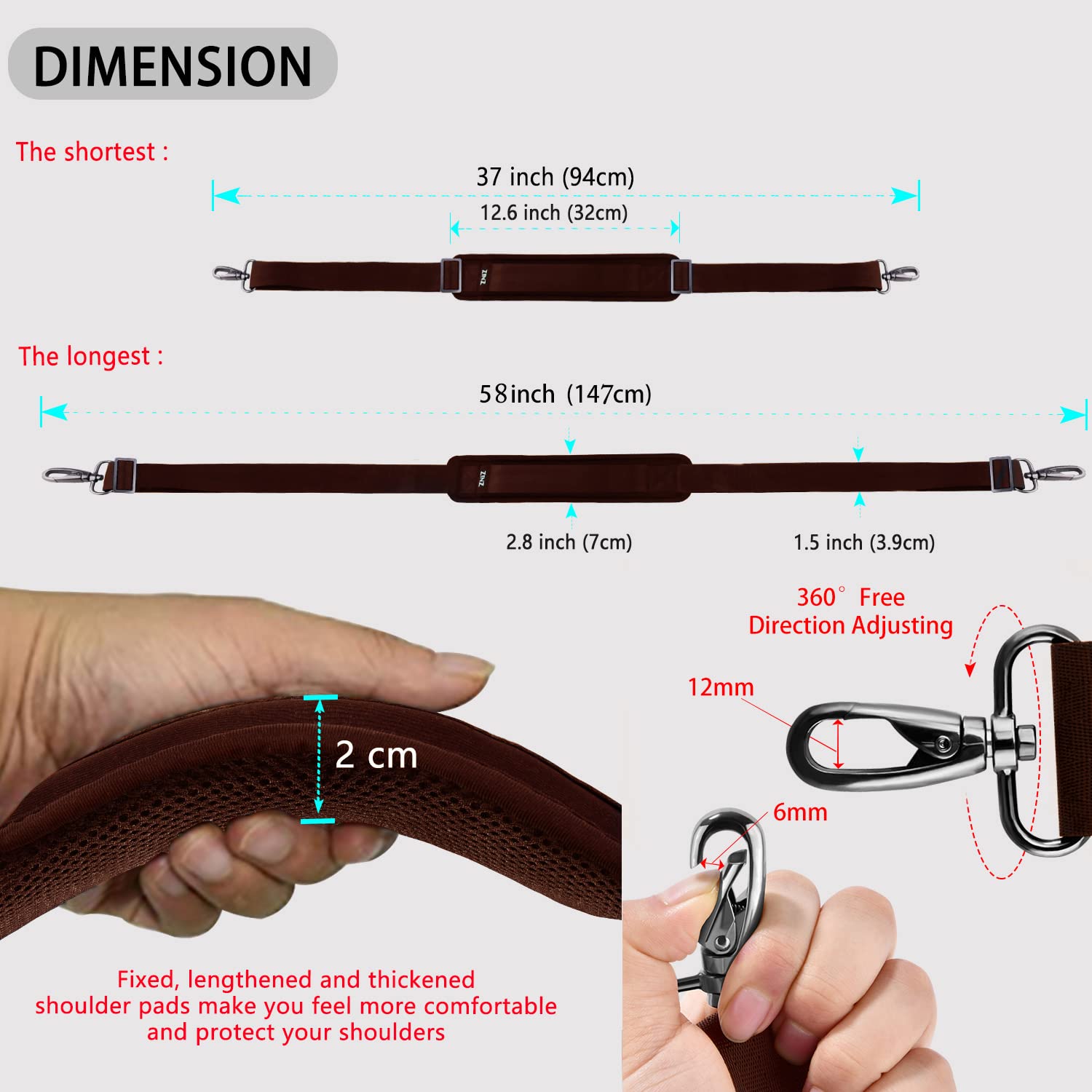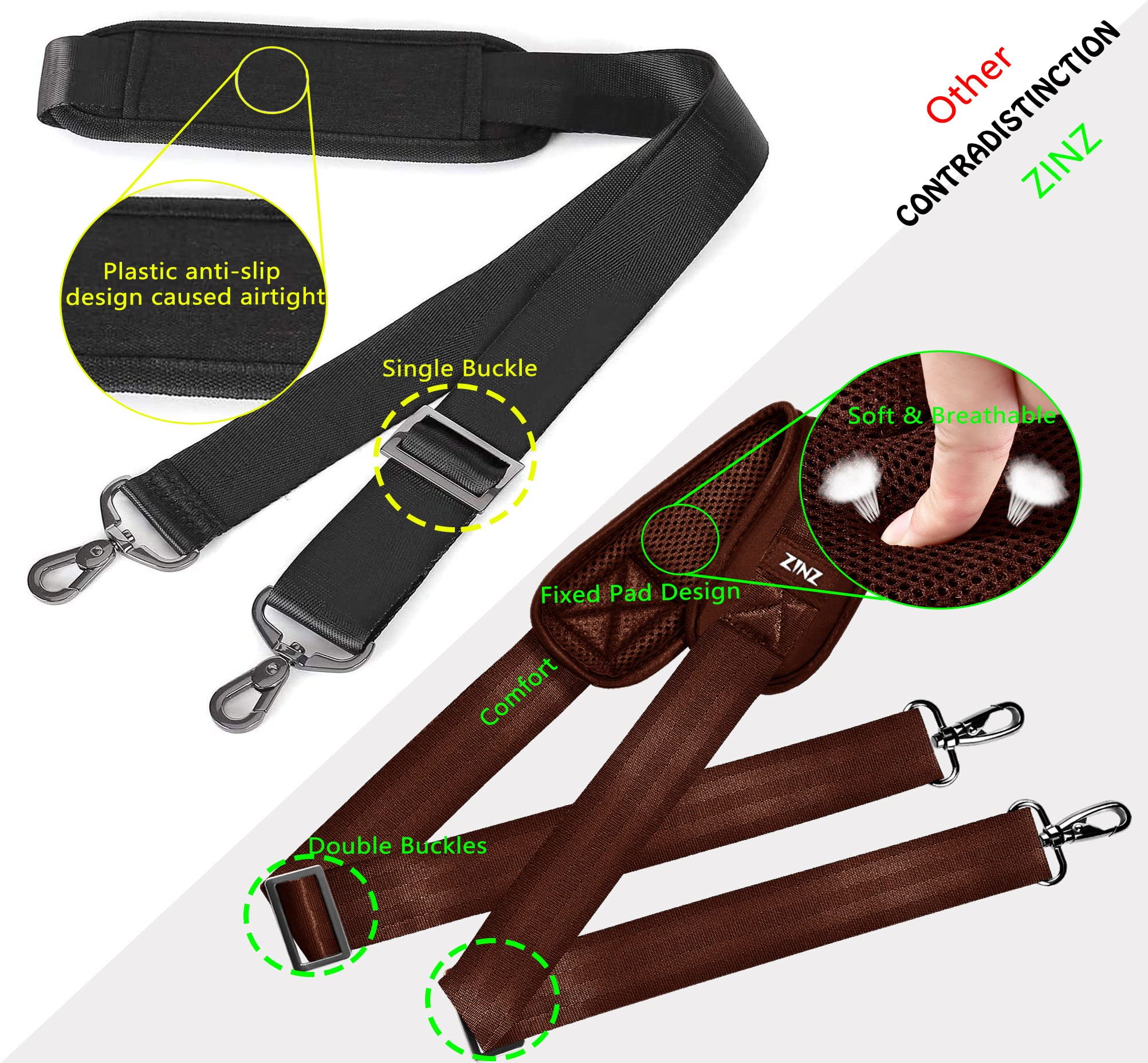 [ZINZ] 147CM ナイロン ショルダーベルト ショルダーストラップ 超耐久性 肩掛けひも - ショルダーバッグ・PC バッグ・カメラケース・ビジネスバッグ・スポーツバッグ・ツールキット・ギターバッグ など,茶色