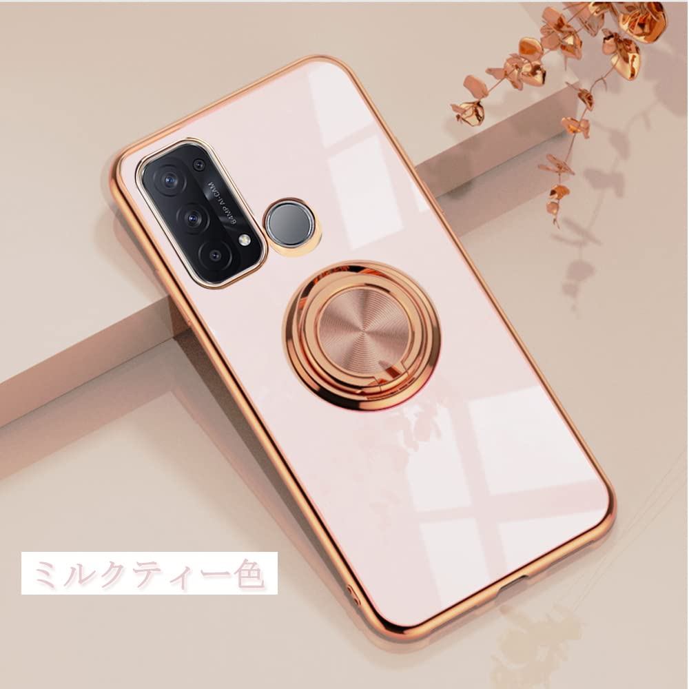 【新着商品】JOOBOY OPPO Reno5 A ケース reno 5a ケース リング付き メッキ加工 レンズ保護 tpu ソフト ストラップホール付き 耐衝撃 スリム おしゃれ スマホケース 携帯カバー オッポ リノ5 a メッキ加工 カバー (OPPO Reno5 A ミルクティーの色)