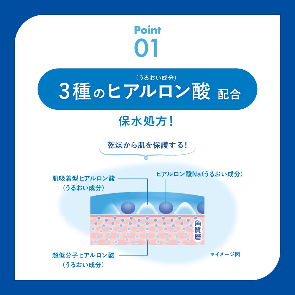 ヒアルロン酸(うるおい成分)配合保水処方。
